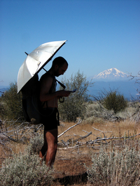 Thanks to Francis Tapon for writing this thorough blog on the backpacking umbrella. I’ve had a Golite umbrella (now collectors item) for the last 6 years but haven’t really gone down the path of considering it an essential piece of my gear setup. My main thought for bringing it on this trip was the rain factor and perhaps some sun protection. You’ve heard me whine about my Washington hypothermia trials from which I now vow to carry an umbrella in the rain. But what about the rest of the time? Am I just going to carry these 8 ounces or am I actually going to benefit from them? Tapon’s blog provides lots of good ideas and has broadened my perspective of the little old umbrella’s benefits. Next step? Rig it up for hands free use because let’s face it, I love me trekking poles. So get ready New Mexico desert, because I’m going to be sportin’ a bad ass umbrella.