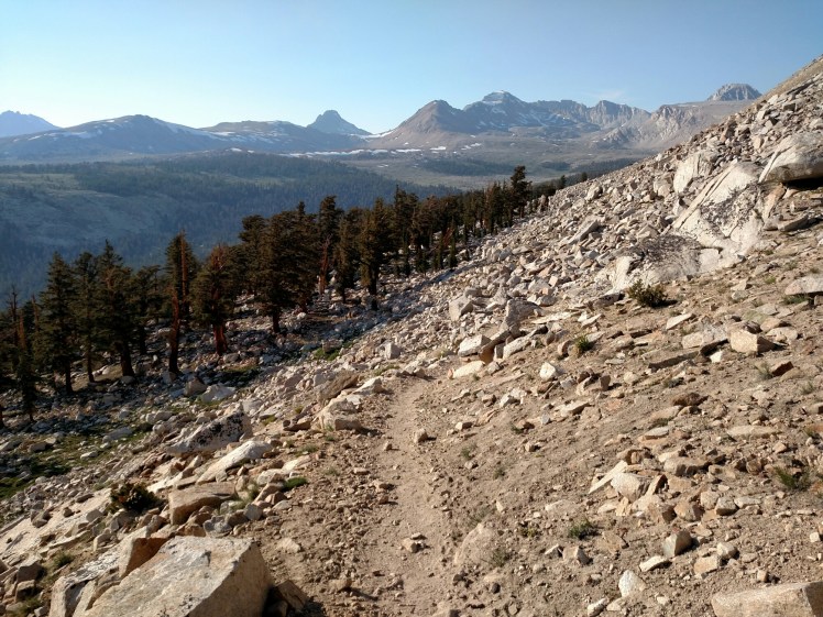 It’s a slow climb out of Rock Creek canyon. I huff and puff, trying to dislodge the altitude brick that rests squarely on my chest. I’m grateful no one is around to see how often I stop to catch my breath. By 11am I arrive at Crabtree Meadow, the notorious west-side launching location for Mt. Whitney summit attempts. There are several PCT hikers there prepping to leave for the summit. Over lunch, I eavesdrop on their stories.