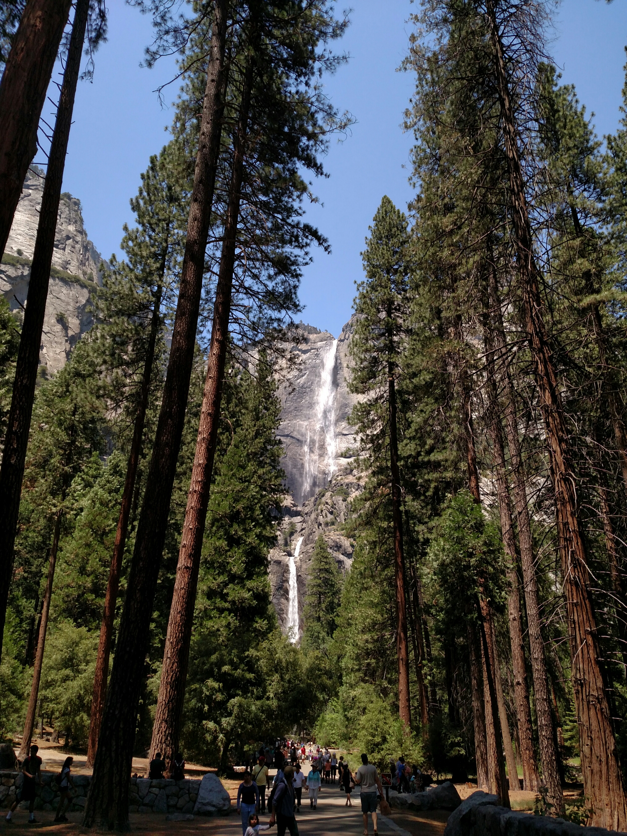 I think there are free hiker shuttles to the valley but it turns out that the one shuttle doesn’t come until 2pm. So I pay the $9 YARTS bus fee and head to the valley at 11am. It’s a long ride plus the holiday traffic adds an element of slow. We roll past El Capitan and Bridalveil Falls before finally arriving at the visitor center. I shouldn’t be surprised but there’s cell service in the valley.
