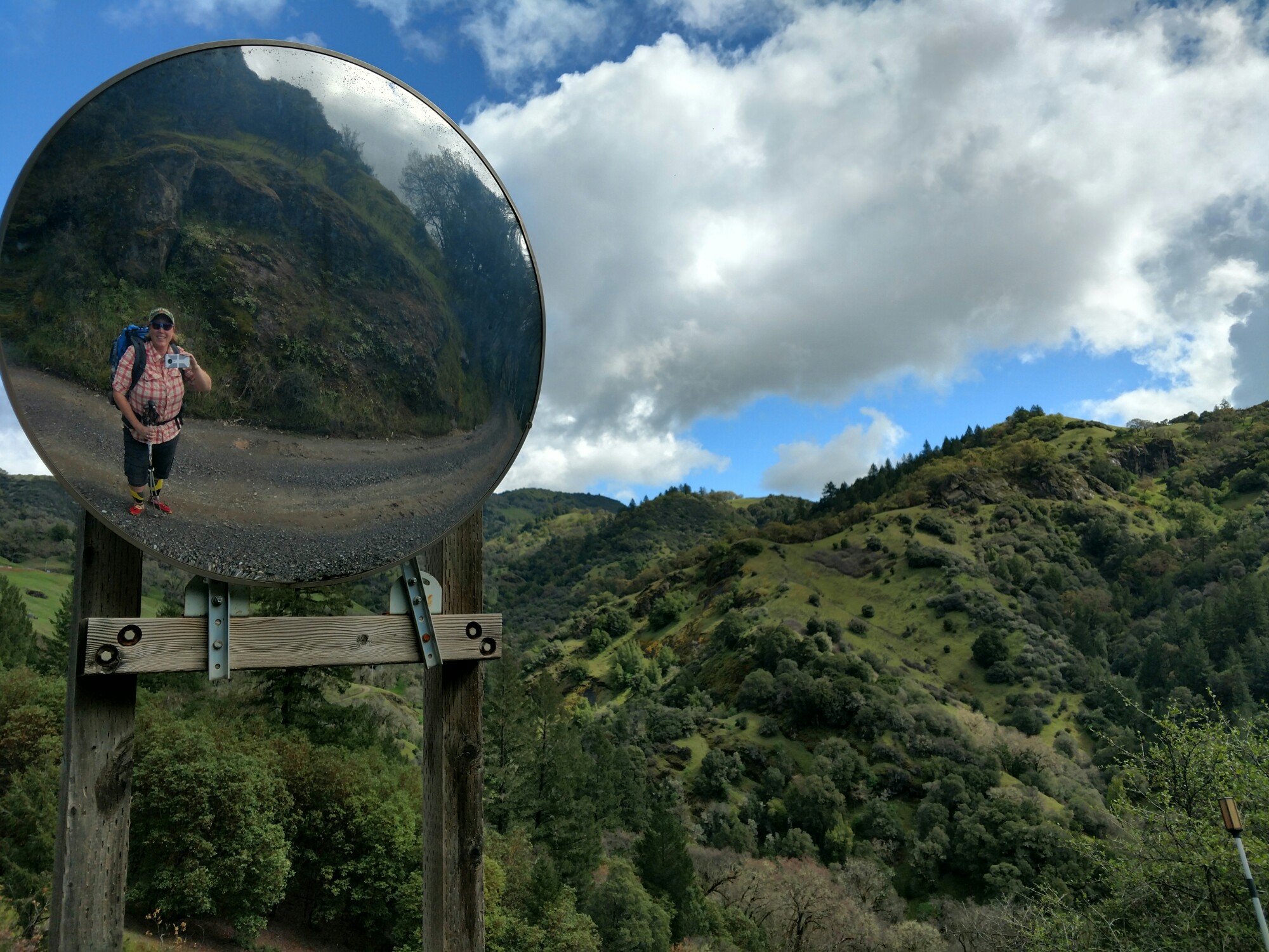 I start out thinking about all those miles I need to hike. I think about the end and how far away that is. Those thoughts weigh me down but regardless, I must push myself. Not even a mile into my hike, I meet an excavator coming up the hill whose continuous track tank tread is shredding the saturated and soft road. What the fuck are they thinking? It’s the perfect day for hiking though. Partly sunny and cool, good weather for climbing. There is a lot of traffic down in the valley and most I do not recognize. Non-land owners setting up marijuana gardens no doubt. After a break along Robinson Creek, I am ready for the long climb back to my ridge-top home where the silence gives way to the gentle breeze in the trees.