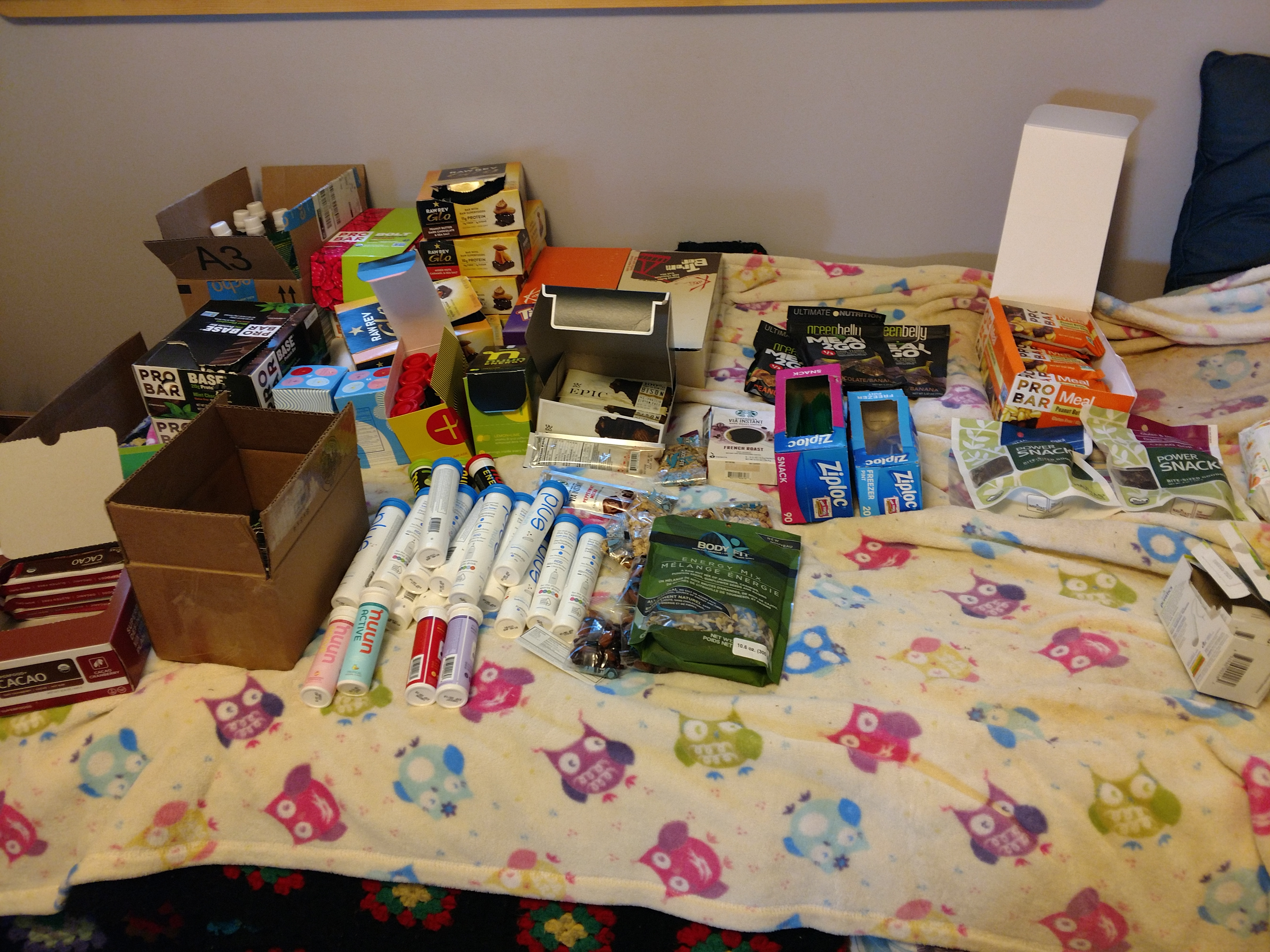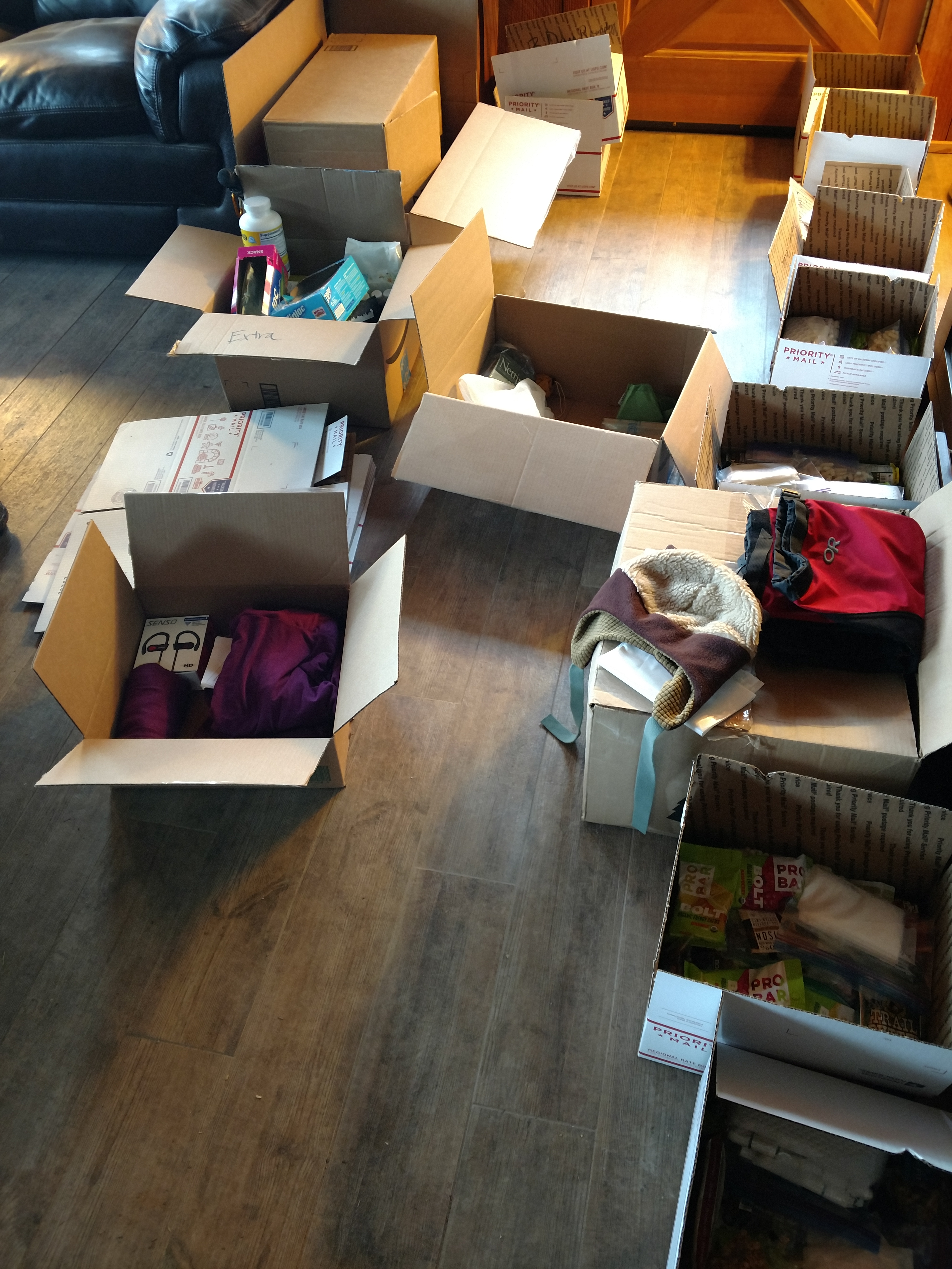 to this (9 resupply boxes + extra food and “might need” stuff)