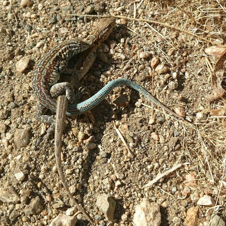 The constant chatter of the creek is like a vice slowly squeezing my head. I can’t wait to find some peace and quiet. The climb out is steep so when I rejoin the trail at 620am I’m sweating bullets. And although the trail weaves into gullies, most of it is already in the sun. I quietly pass the official Deep Creek Hotspring where a few hikers are soaking in the hot pools. I cross the rainbow bridge, listen to a ground squirrel sound a loud warning, watch two lizards having sex and try to ignore the heat as I push into the Mojave Forks Dam.
