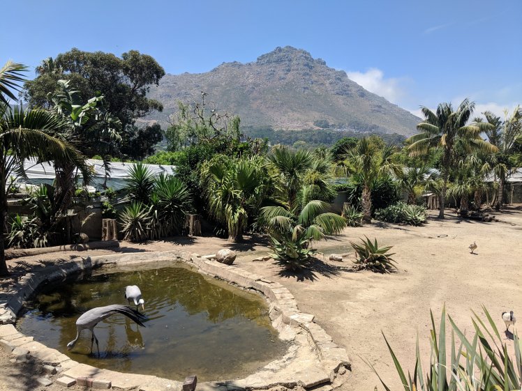 I Uber to the closest bus location which is Kirstenbosch. I take a peak in the gift shop and then ride the Peninsula Tour bus until the World of Birds. It’s always a challenge for me to see animals in captivity but these birds would otherwise be dead without the aid. It’s a spectacular meandering exhibit as the path enters cage after cage. The birds cross my path at free will and everytime one peacock starts to call they all join in. It’s not just birds. There’s marmosets, monkeys, meerkats, serval cats, goats, and turtles too.