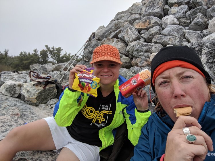 We depart from the Platteklip Gorge and I huff and puff my way up the steep rock face. It’s dotted with beautiful flowers and the weekend masses are out. As we approach the top, it’s cloudy and cold as the the wind rips through the gorge. In case you’re looking for your newest challenge, try running up and down the Platteklip Gorge in some 9 minutes and change. It only took me two hours to go one way.