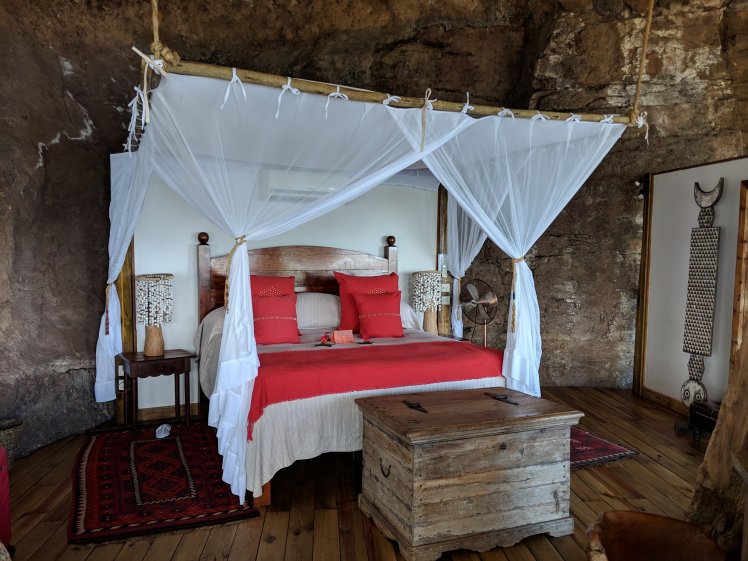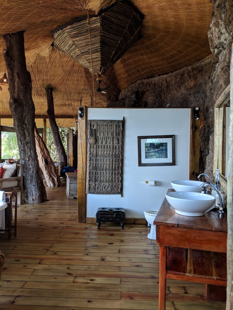 When he pulls up at the entry I’m greeted by Conceptor who will be my valet during my stay. A valet takes care of your every need. At the front desk I’m given a cool washcloth with which to refresh. After I sign in, I meet Mike who gives me a bit of a tour. As we sit, and I look out at the Zambezi, I’m served a fresh hibiscus cooler. At which point Conceptor returns to escort me to my room, The Tree House. It’s stunning of course and there are quite a few rules because the velvet monkeys might stop by at any time.