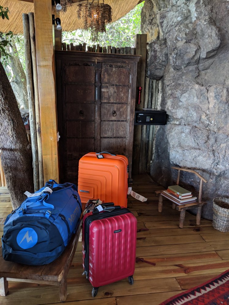 I’m like the 7th person off the plane and I’m starting to see the possible value of my upgrade. Being one of the first off means I don’t have a wait at customs. After paying my $50 USD and getting my Visa, I look back and the line is long as the rest of the flight’s passengers have to wait their turn. I breath a sigh of relief when my luggage comes out and then I make my way to the entry where at least three different people try to sell me taxi rides. I’m beyond grateful when I see a Tongabezi sign with my name on it. I don’t why but I almost start crying. My driver Chris gets the truck and we’re off in no time. Chris tells me a bit about the area as we drive down the dirt road to Tongabezi.