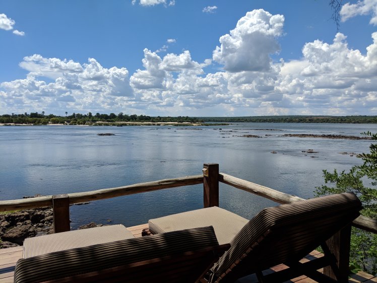 The chef meets with me and we talk about my dietary restrictions before he fixes me a grilled cheese sandwich. Not sure if I feel like eating but I give it a try. Then I just spend the afternoon relaxing in my room trying to catch a bit of the AC. I relax in the “hangout” where there’s wifi and just watch the Zambezi float by before it’s dinner time.