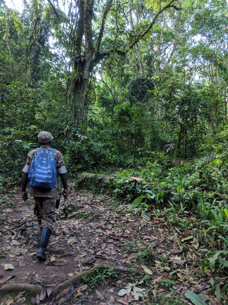 Before we know it, our one hour with them has passed and we hack our way back to the ridgeline. We say goodbye and thank you to the trackers who will spend the rest of the day with them. We stop briefly to drink water before pushing on.