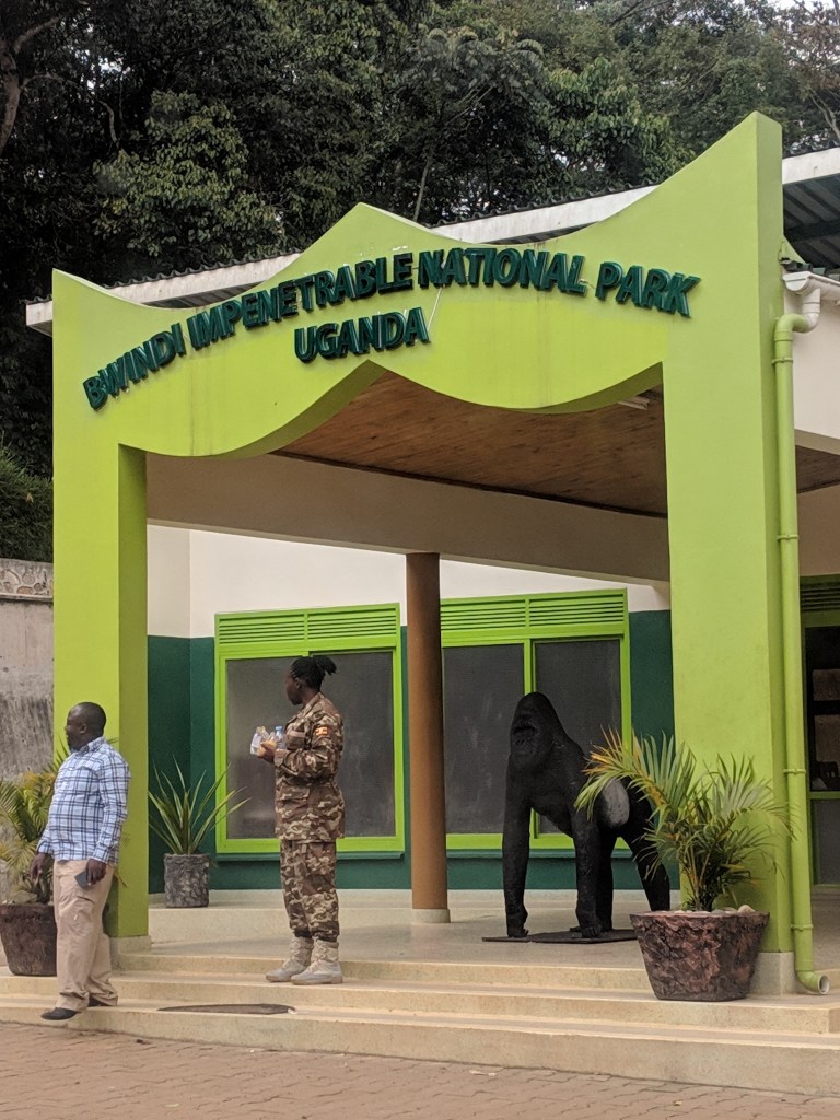Breakfast is at 7am but I don’t eat much because I know there’s a serious trek ahead. I head over to the Bwindi Impenetrable Park Headquarters where there is music and dancing by a local women’s bicycling group. After the large group briefing, I’m assigned to the Mubare trekking group. Mubare is the name of the family of gorillas which we will attempt to find.