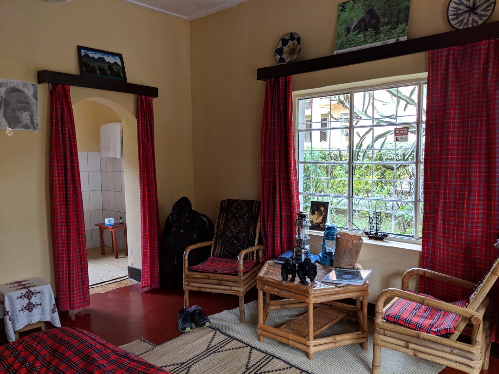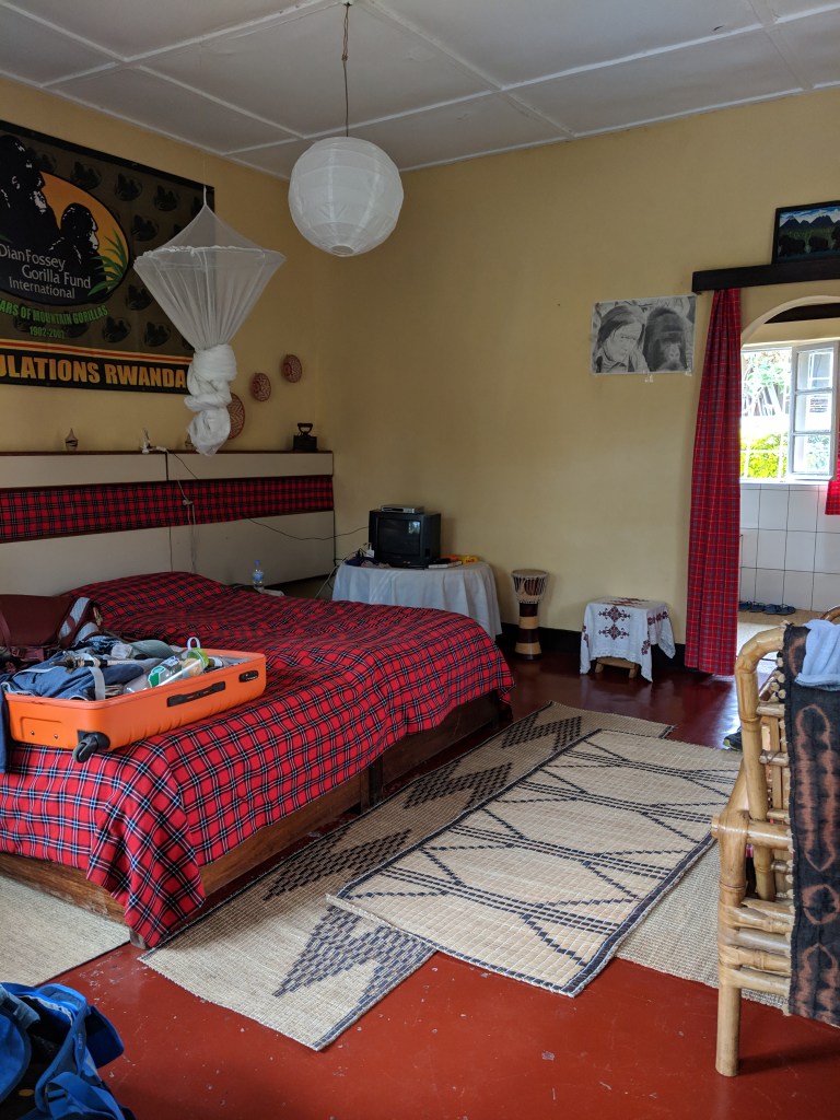 We get to Hotel Muhabura where I’m staying in Room 12. This is the room where Dian Fossey stayed when she came to town. They’ve tried to keep the room just as it was when she stayed there. There even seems to be a hint of smoke smell still. I relax a bit and then it’s time for dinner. When we crossed into Rwanda the time changed and we got an extra hour. I’m tired and head to bed early.