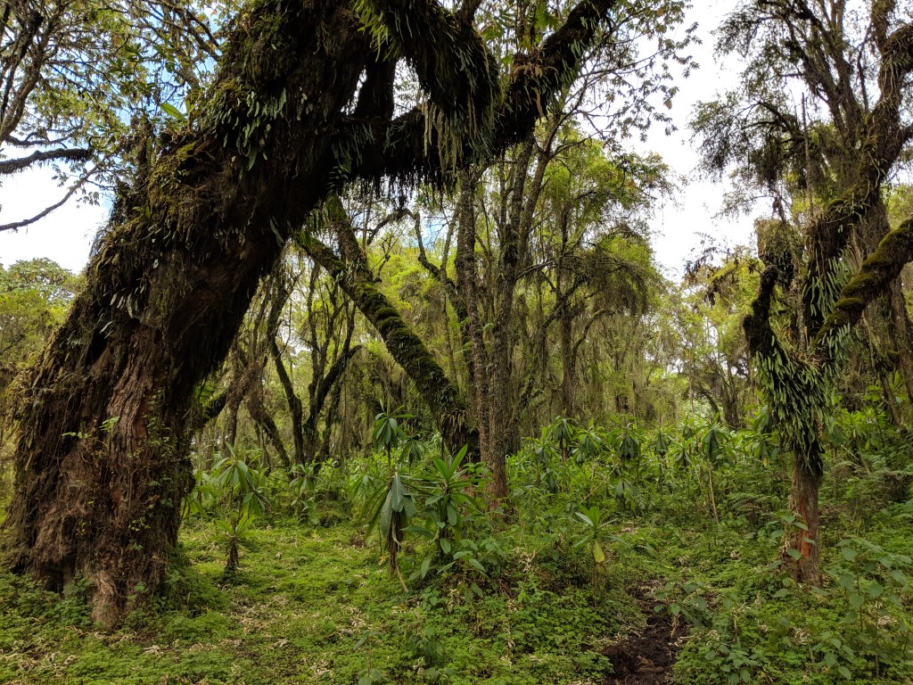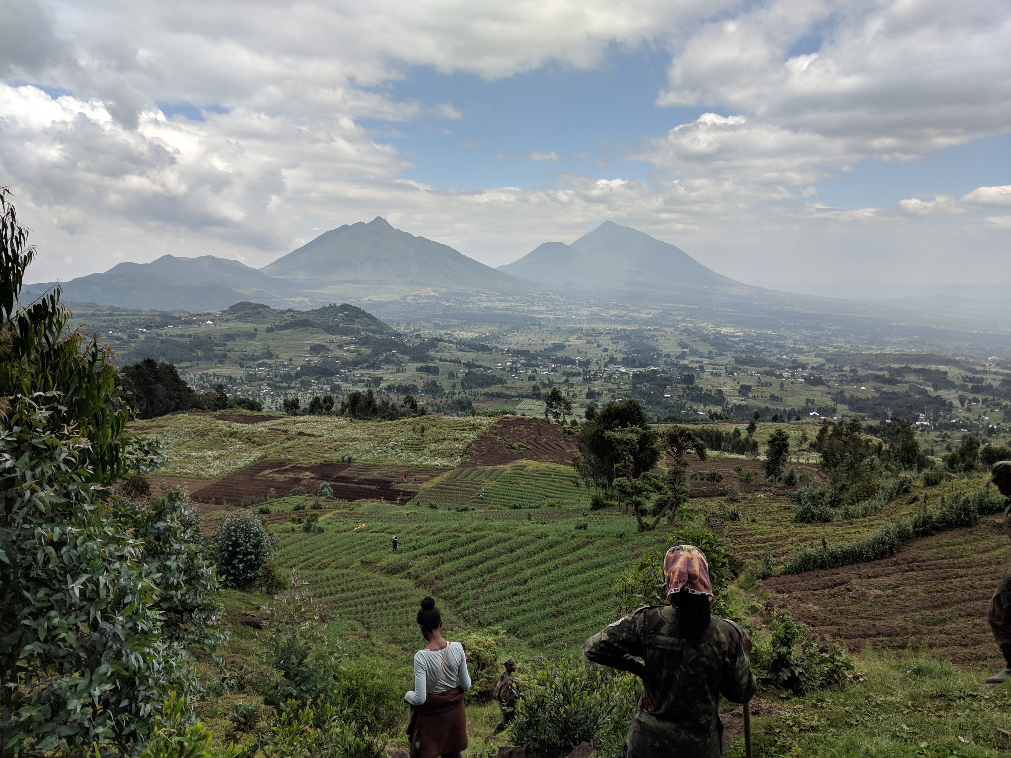 After almost and hour, there suddenly is a loud crashing noise and there are two young male mountain gorillas playing around the path we’re on. Another gorilla is knocking down large plants which almost hit us and then it comes towards me while beating its chest. I turn my eyes downwards and it suddenly seems to be over. The two young males move down the path a bit but then they’re back. I snap a few pictures but we soon move on as we are not here for gorilla viewing. We’re damn lucky to see mountain gorillas without having to pay the $1,500 USD gorilla permit fee.