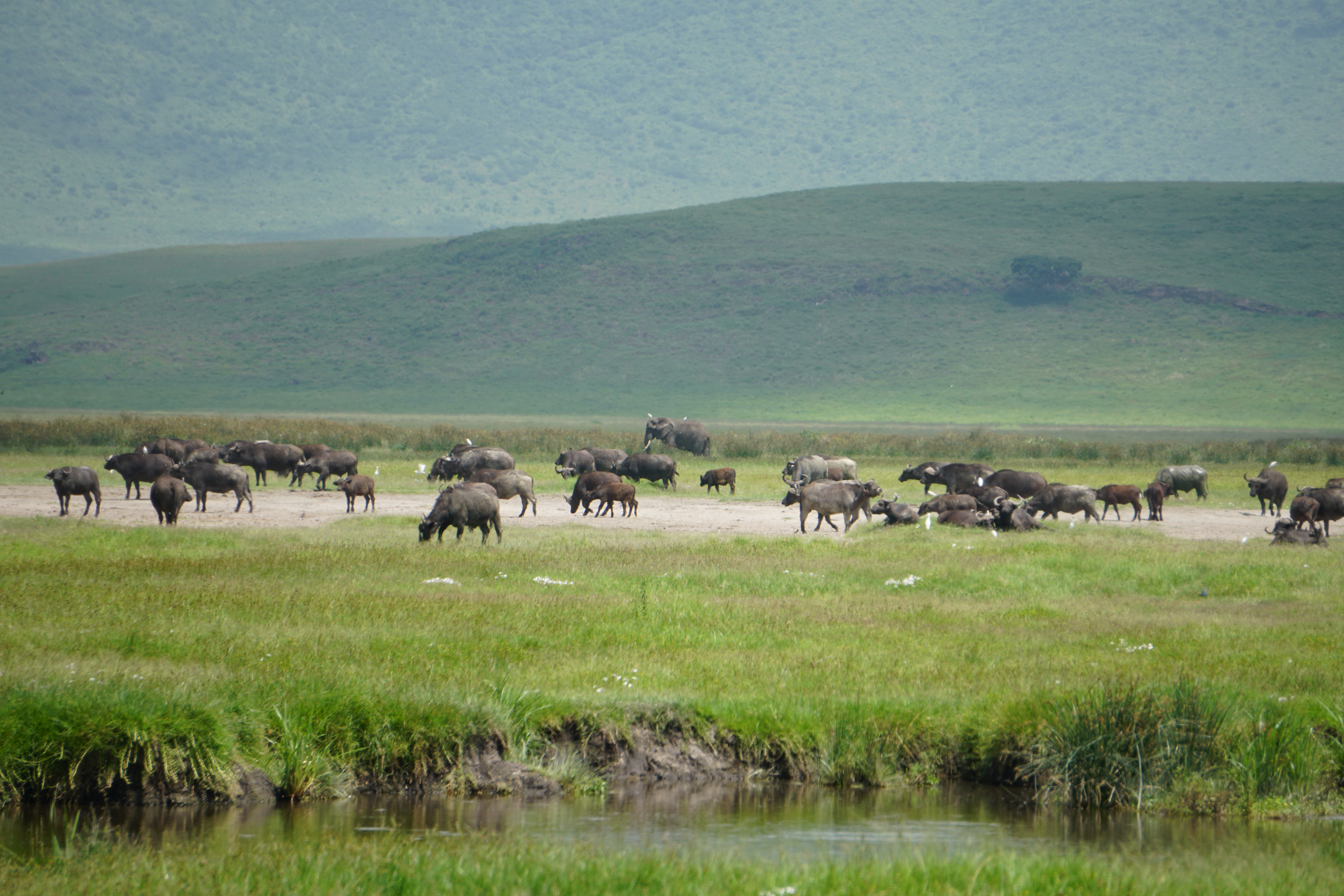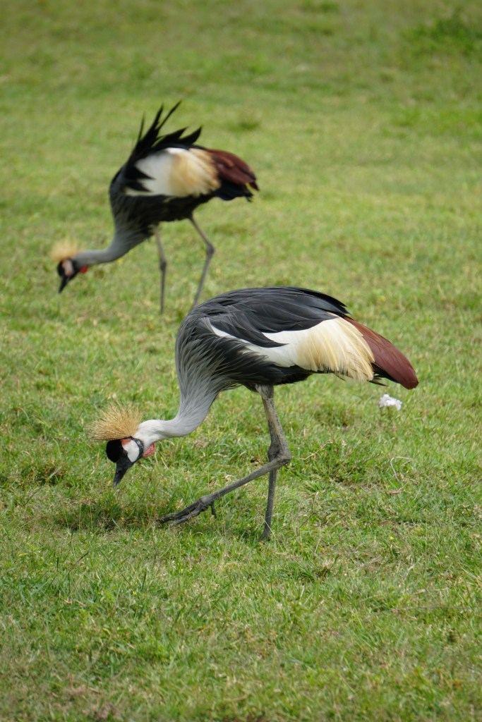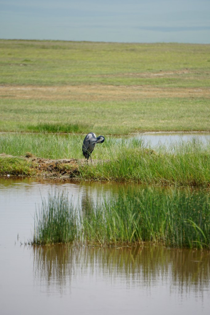 Lunch spot next to a large watering hole and luckily a bathroom too. Next up zebras, more Thomson’s gazelles, a Kori bustard, wildebeest, spotted hyena, Black-bellied bustard, Secretarybird, Crested crane, Golden jackal, buffalo, Black-headed heron, Black rhino, ostrich, eagles.