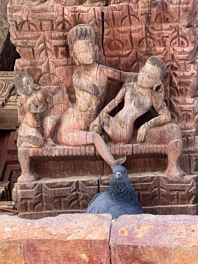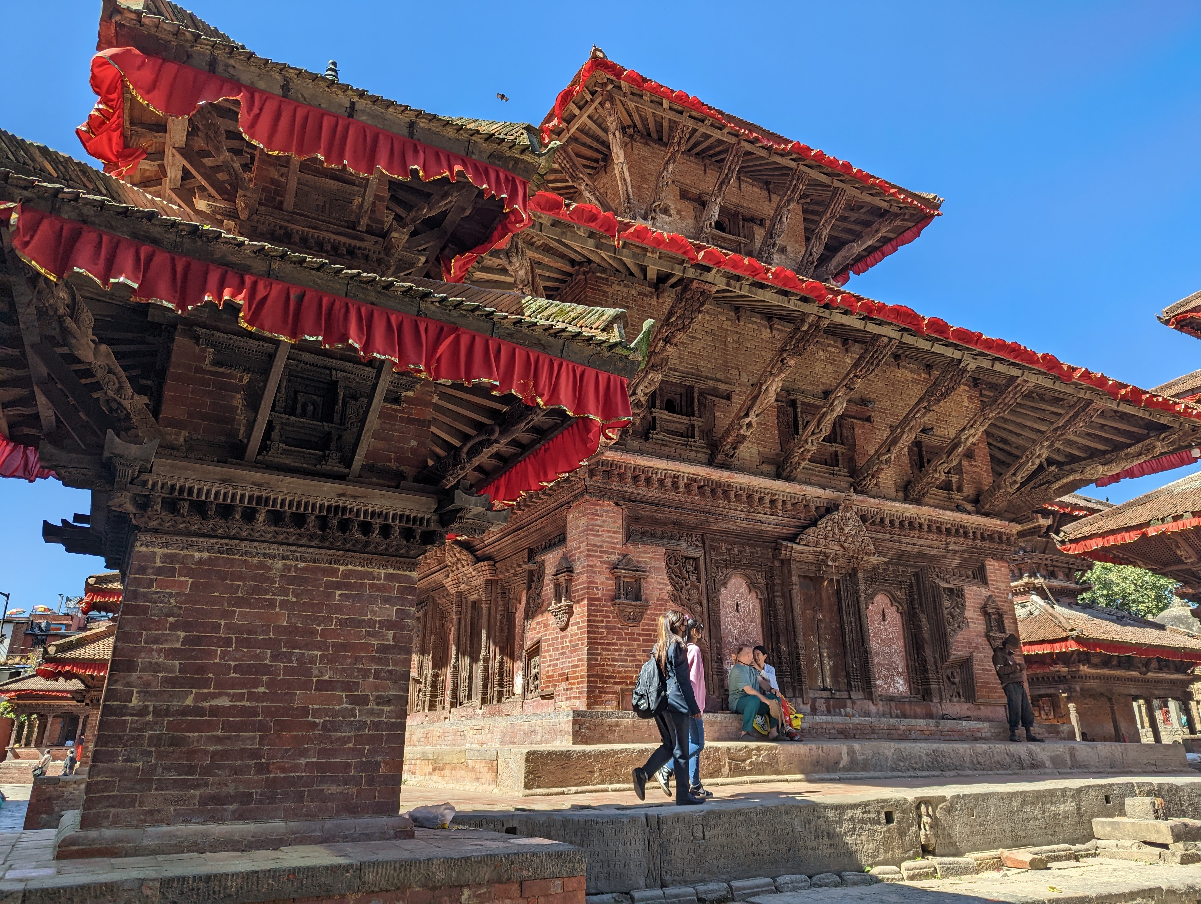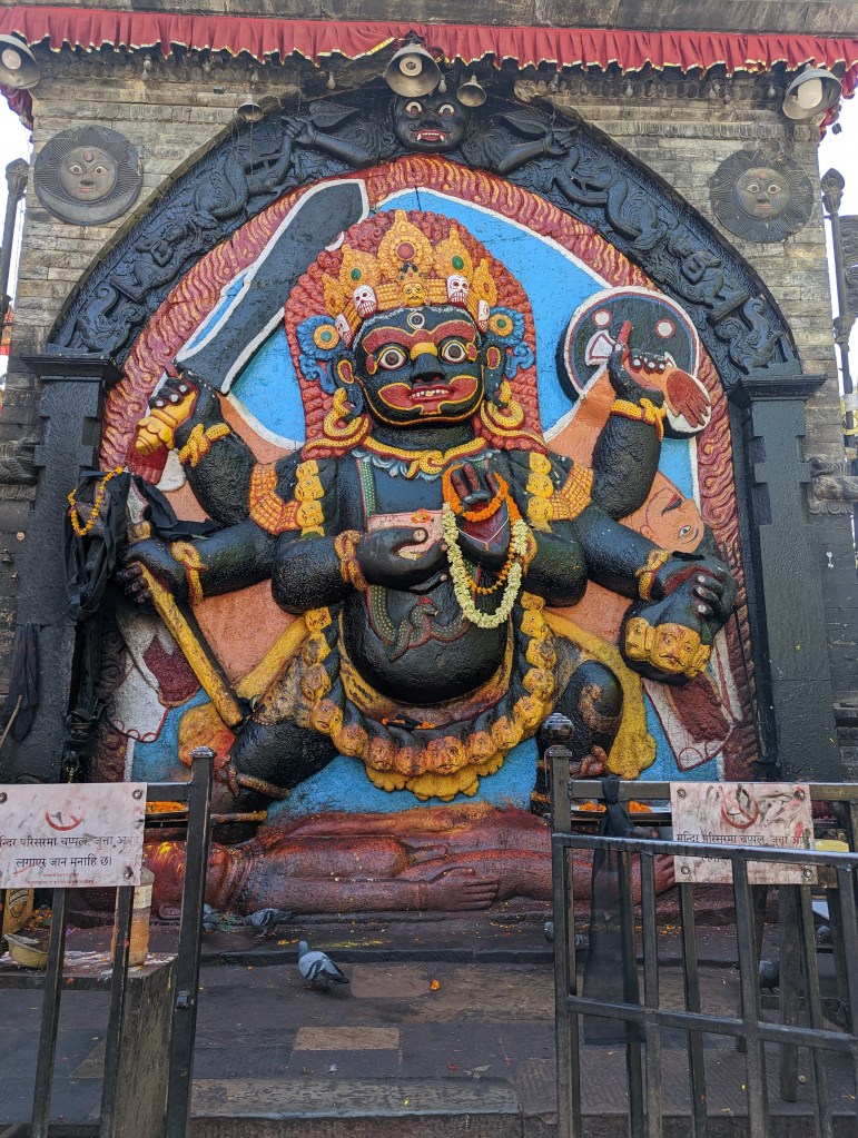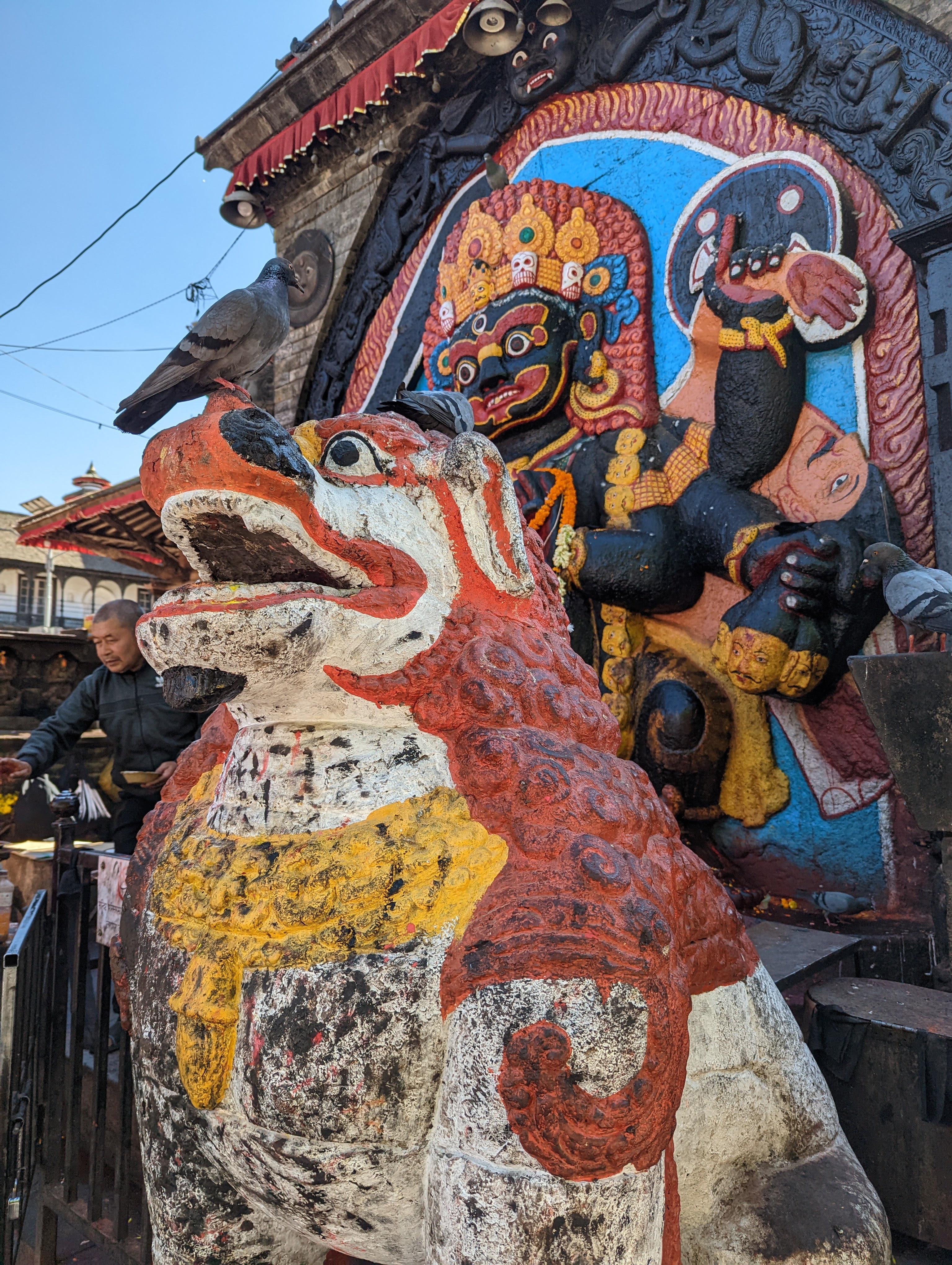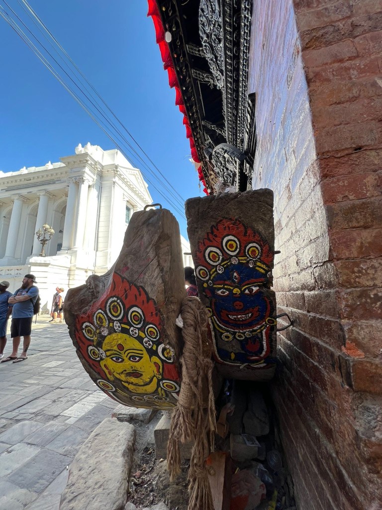 Durbar Square, an UNESCO World Heritage Site, is located in front of the old royal palace of the Kathmandu Kingdom. Several of the buildings collapsed during the April 25, 2015 earthquake but they have since been rebuilt. At the southern end of Durbar Square is the Kumari. This gilded cage contains the Raj Kumari, a girl chosen through an ancient and mystical selection process to become the human incarnation of the Hindu mother goddess, Durga. Kumari is only allowed to leave the building a few times a year for specific festivals. She is also not allowed to touch the ground and is carried for these festivals. The Kumari holds this distinction until her first menstruation at which point the next Kumari takes her place. Photographs of the Kumari are strictly forbidden!