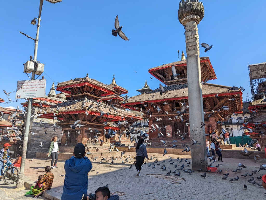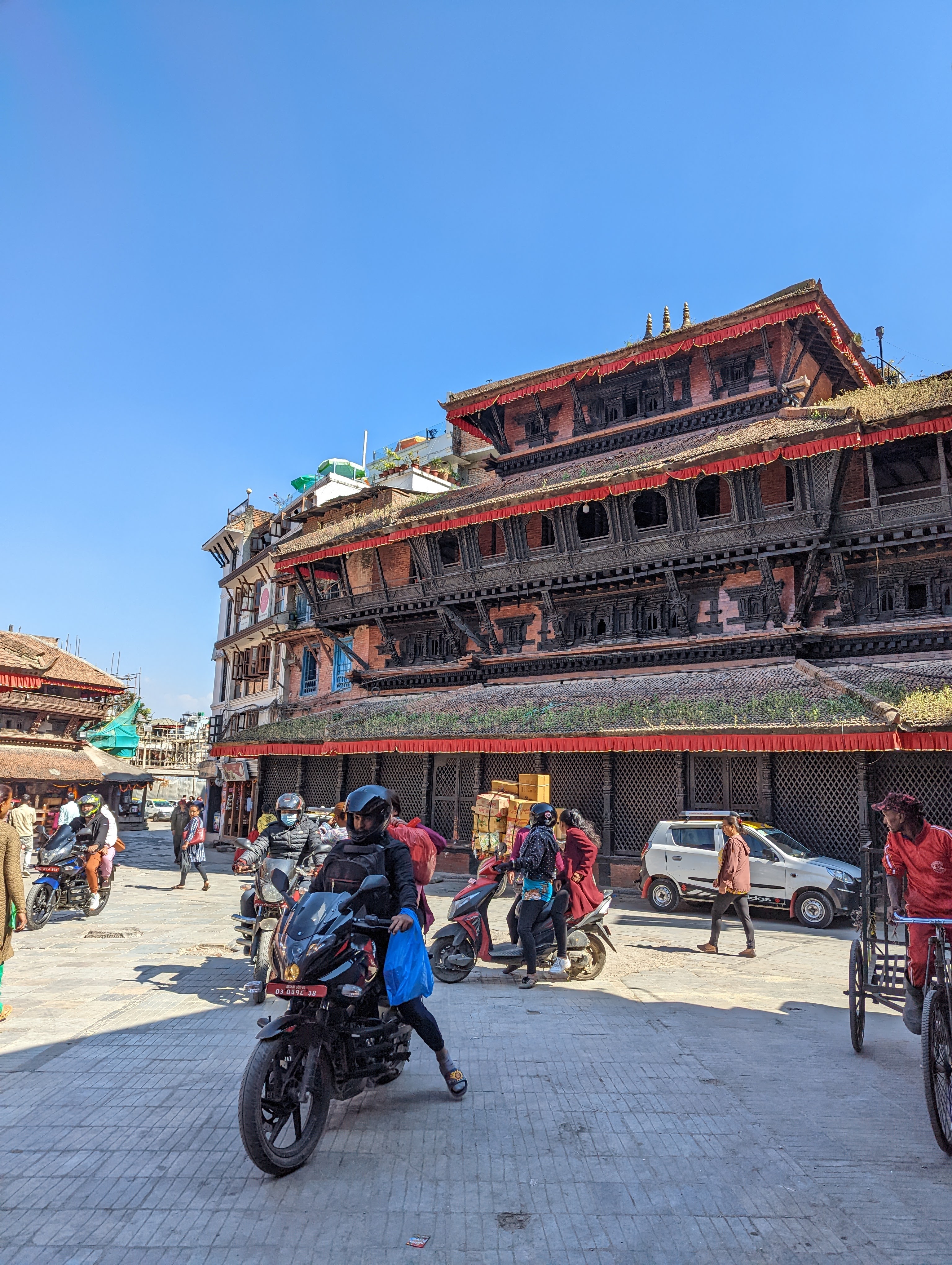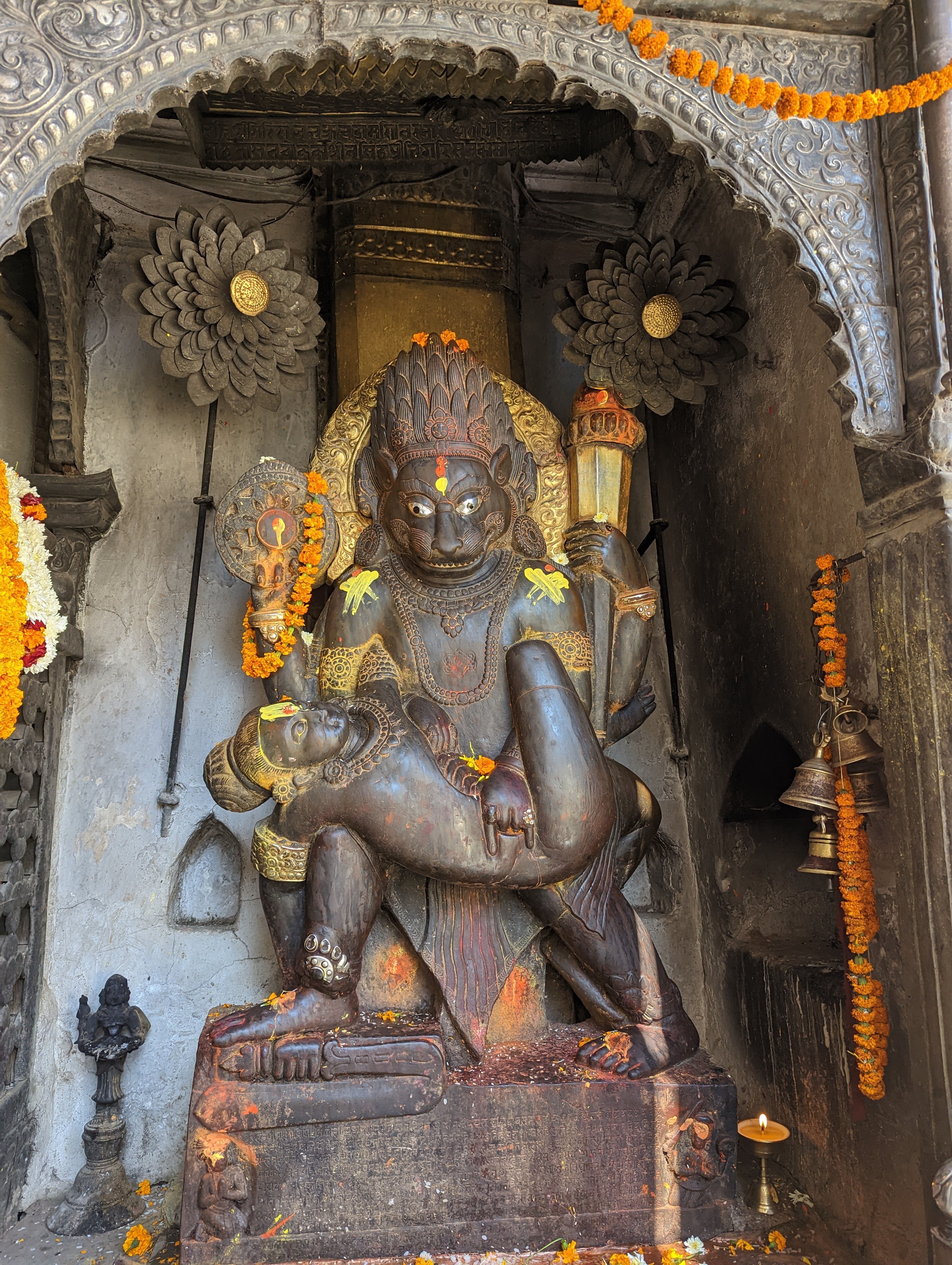 Swayambhunath is a hindu word but this temple is commonly known as Monkey Temple. This ancient temple sits atop a notable forested hill in Kathmandu. It is one of the oldest religious sites in all of Nepal and is a Buddhist pilgrimage site. Although the site is considered Buddhist, it is revered by Buddhists and Hindus alike. The complex includes a stupa, shrines and temples. The sacred monkeys are everywhere and ready to snatch a snack right out of your hand. Dogs also sleep around a stupa, soaking up the sun and are seemingly oblivious to our presence. There are certain areas where photos are not allowed and shoes are not allowed inside the temples.