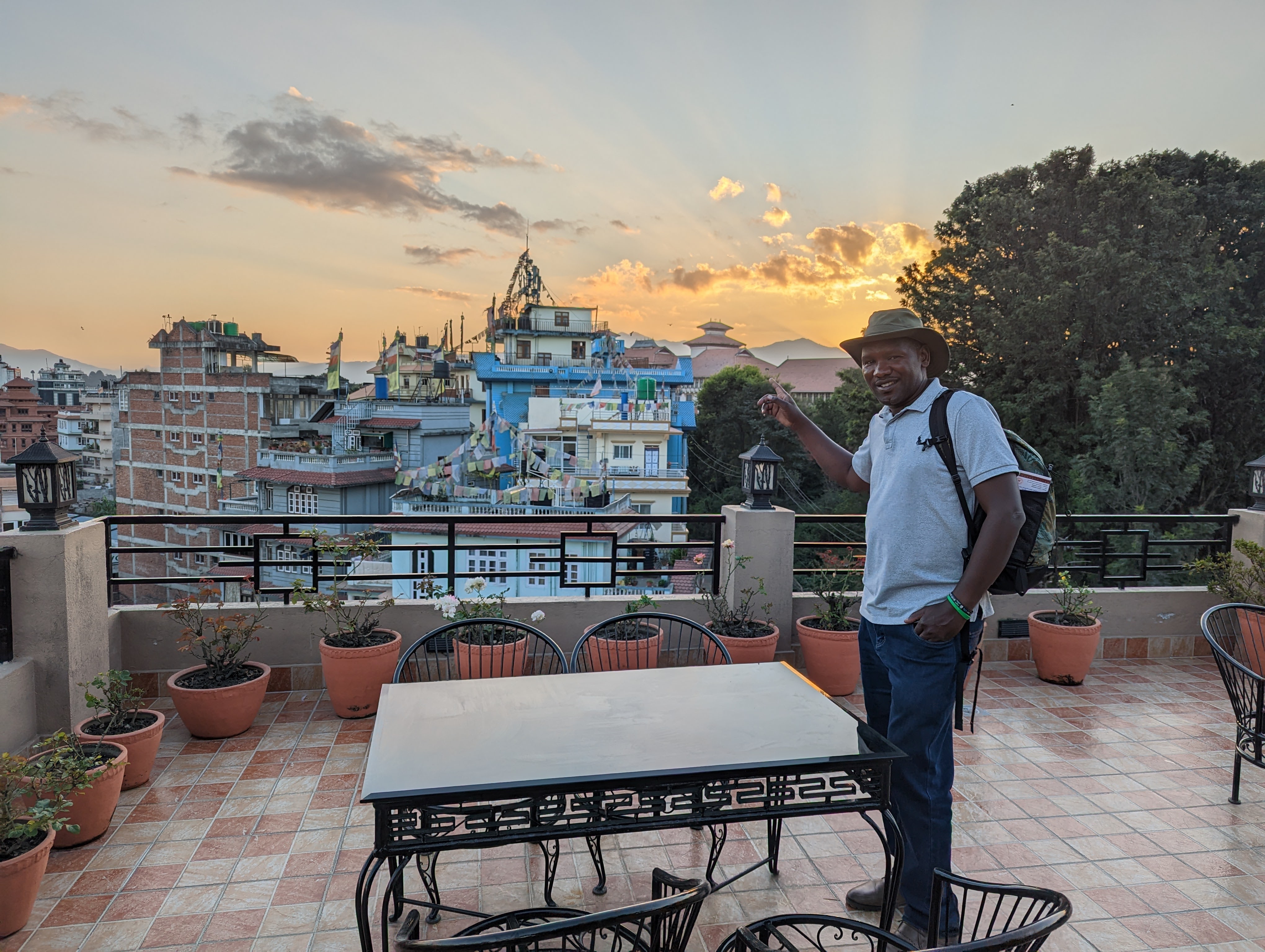 The early start is a bit rough. We have to get up, shower, eat breakfast and get over to the Hyatt Regency by 9am. Caspar and I and fellow group member Silke are staying at Hotel Butsugen, which is only a stone’s throw away from the Hyatt. We use a very handy backgate entrance to the Hyatt and join our other group members Clearance, Jeremy, Susan and Sophie in the lobby. Susan had to taxi over from the Thamel District and it’s my first time meeting everyone. Only Caspar and Clearance know Sophie from a previous trip on Mt. Kilimanjaro. Silke and Susan have met Sophie very briefly before. Jeremy, Sophie, Susan and I are from the United States. Caspar and Clearance are from Tanzania. Silke is from the Netherlands.