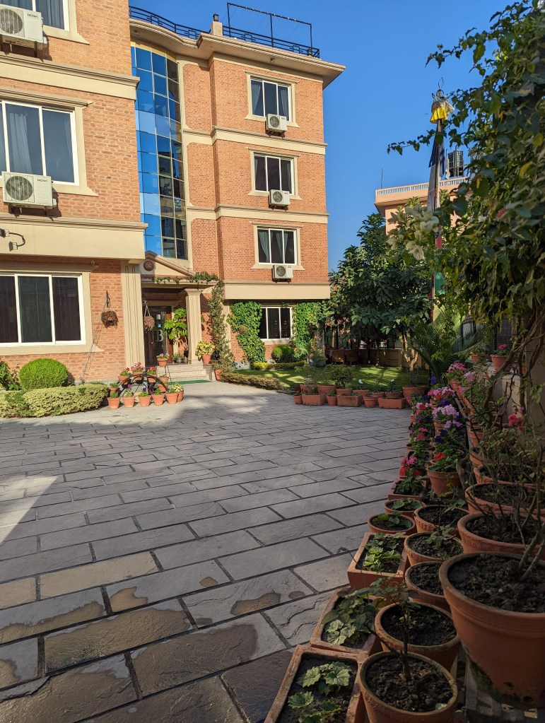 We sleep in before enjoying a yummy, leisurely breakfast in Hotel Butsugen’s outdoor patio. We take a short walk through the Hyatt’s back entrance to visit their atm. I withdraw Nepalese rupees for the guide and porter tips. For a few hours, I sort my gear into my duffel bag and backpack. Caspar is hanging out on the roof until he comes down and sorts through his gear too. The alley aka road that goes right by the hotel leads directly into the Boudhanath Stupa. We follow Silke down this road to a nice restaurant she has found during her recent explorations. Dinner takes a while so we kinda have to rush to make our 7pm trip briefing at the Hyatt.