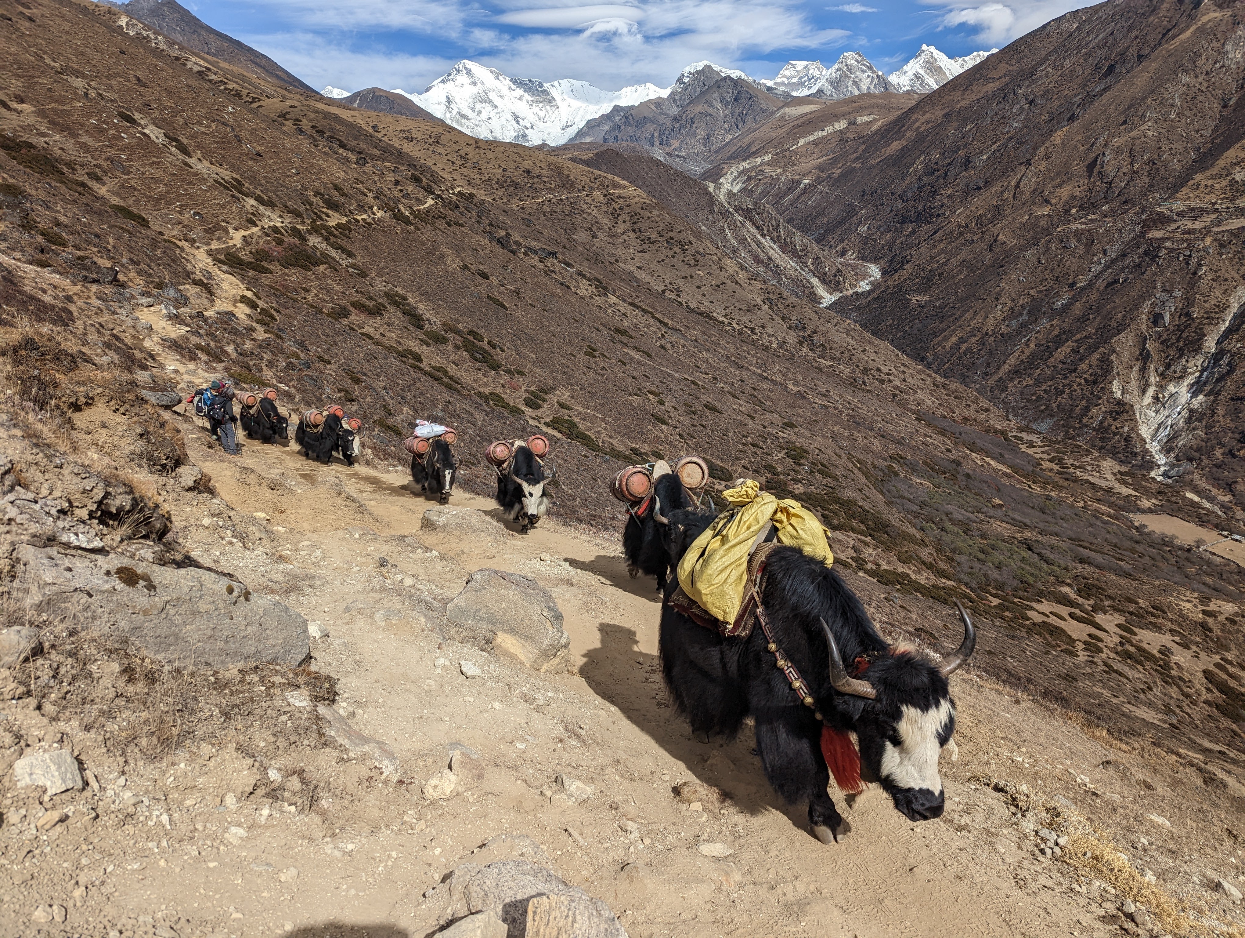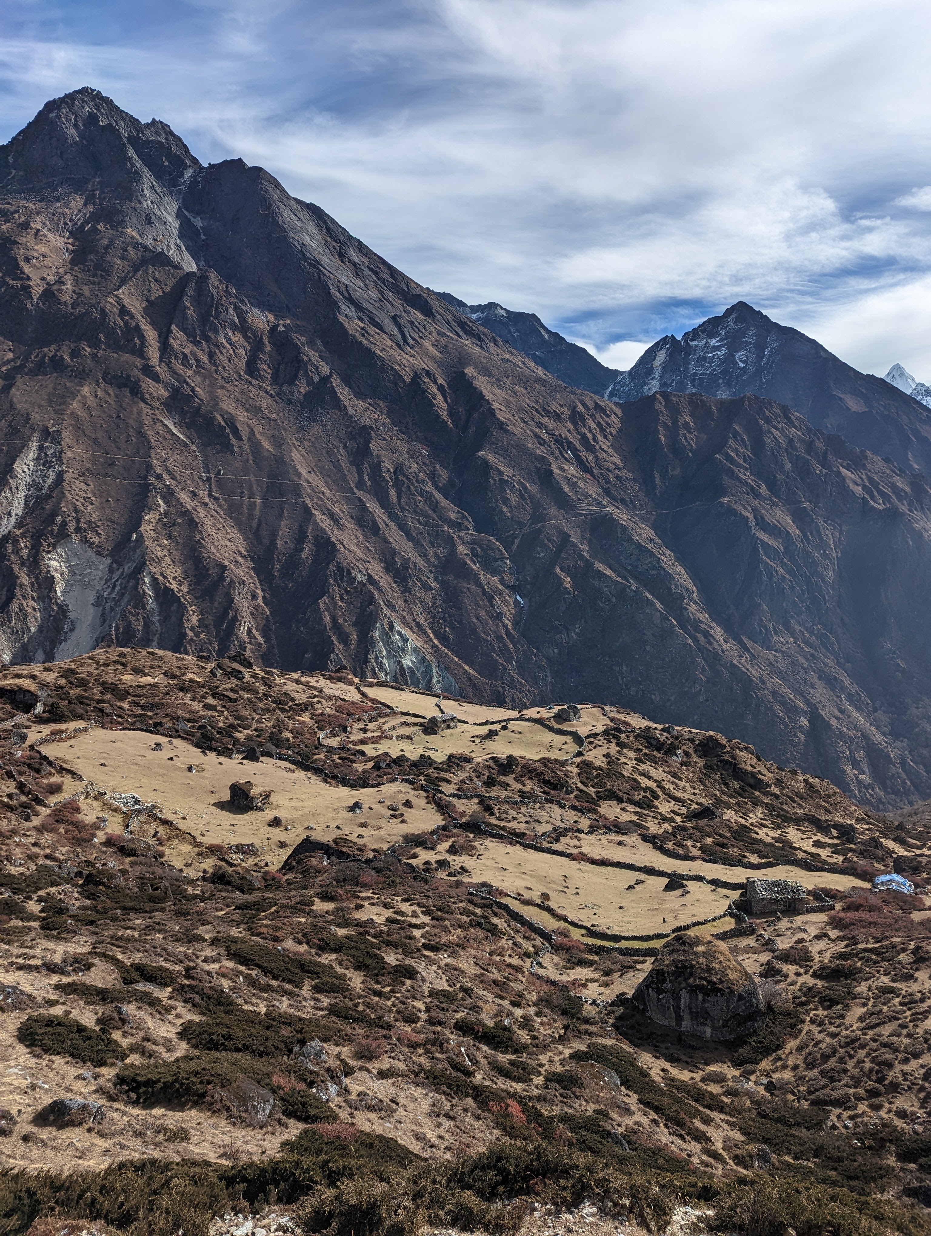 The trail levels out and climbs gradually. I’m loving this trail and I’m able to move with ease and without labored breath. The sun warms us as we enjoy views in every direction. We arrive in Machhermo by 11:20am having hiked for less than three hours.