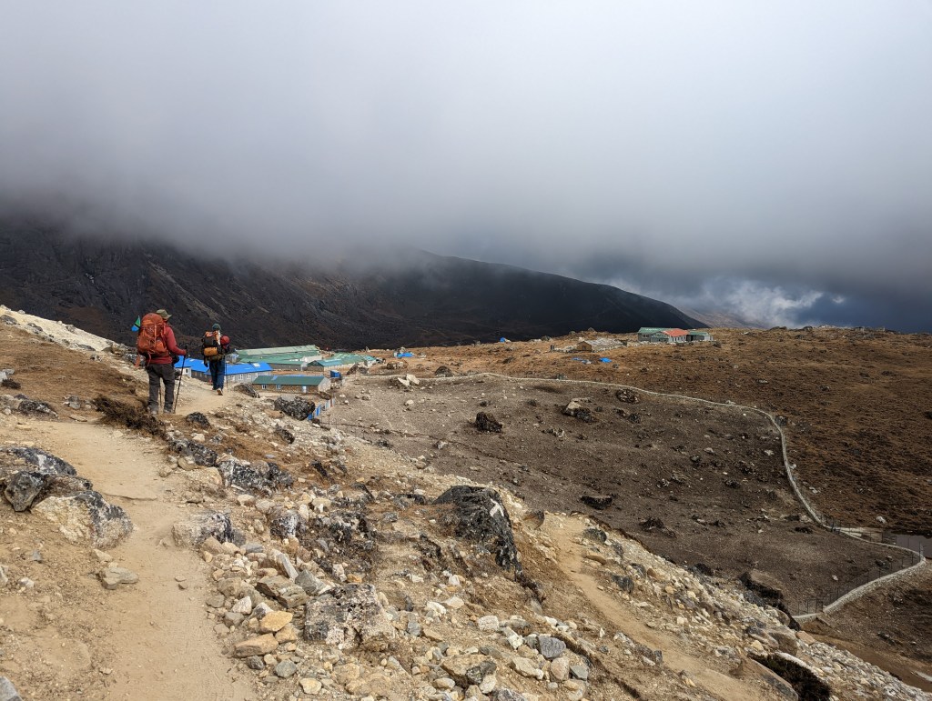 It is a long, rough night. If I do sleep, it is infrequent. Caspar has trouble sleeping too and we both feel like we can’t breath. Caspar opens the door to our room in an attempt to get more air into the room. We don’t open the windows because the rats keep running back and forth on the ledge outside. The chewing is so loud at one point that I get up to make sure they aren’t in the room eating my precious snacks. Our efforts don’t seem to help and every so often no matter how many deep breaths I take I feel like I’m gasping for air. It’s a scary and uneasy feeling. Due to the challenging and long day of crossing Cho La Pass, breakfast is scheduled for 6am. We are awake long before the 5am alarm as Caspar and I discuss my options. I have not slept and still feel tingly, disoriented and weak. I thought I had heard mention of a lower alternate route. I am hopeful for this. Otherwise, my options are slim. I either have to helicopter out or proceed up the trail.