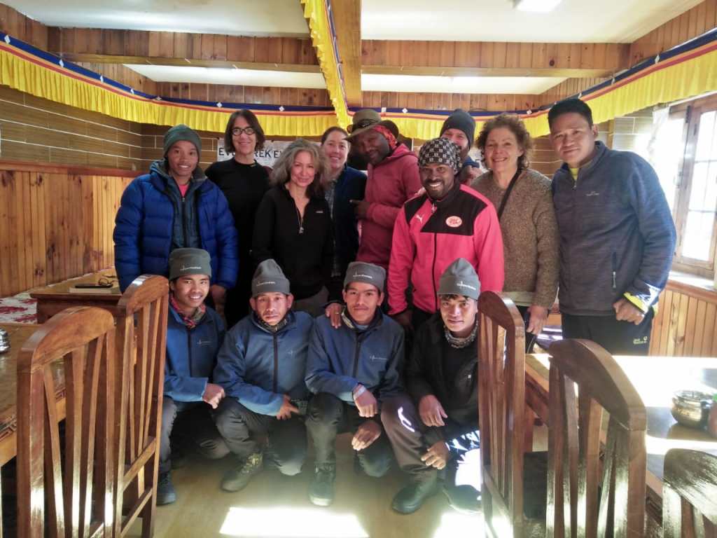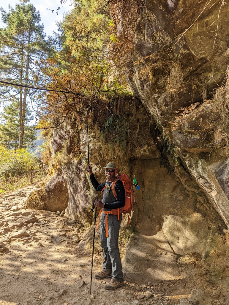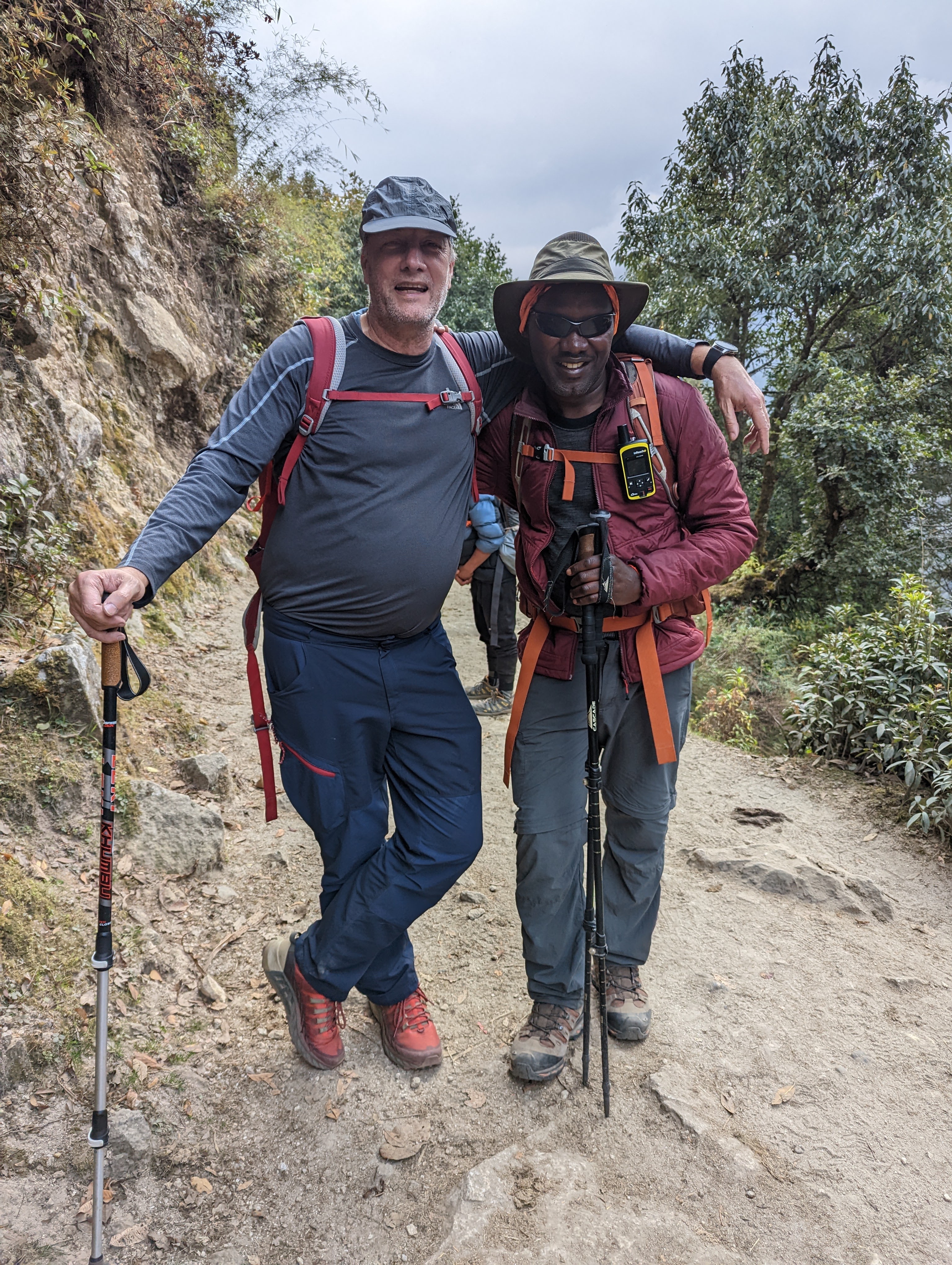 The clouds have moved in and there’s a chill in the air. But it’s enough of a climb that I have to ditch some layers. I slowly plod along wishing I could move faster but content to keep moving without taking any breaks. Just as Caspar has caught up with me, he meets a previous client Ray who is coming towards us on the trail. It’s a short but wonderful reunion! It’s astounding how many people Caspar has seen during the trek that he knows! The interconnectedness of this world is a unique thing.