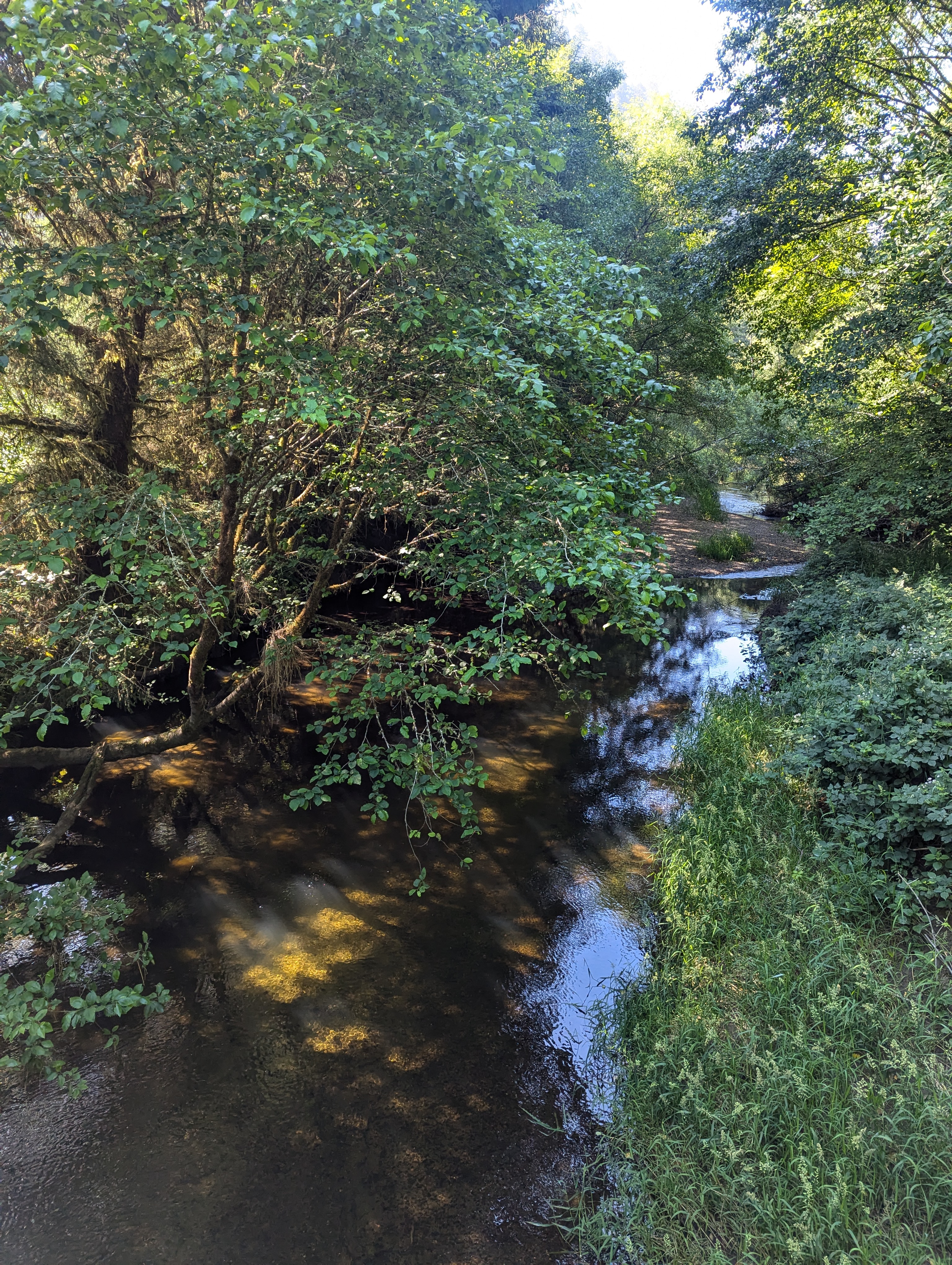 We follow the trail up and away from Trillium Falls through old growth forest. The trail loops around before reaching a junction with Davison Trail. We cross over Prairie Creek before checking for Roosevelt Elk in Elk Meadow.