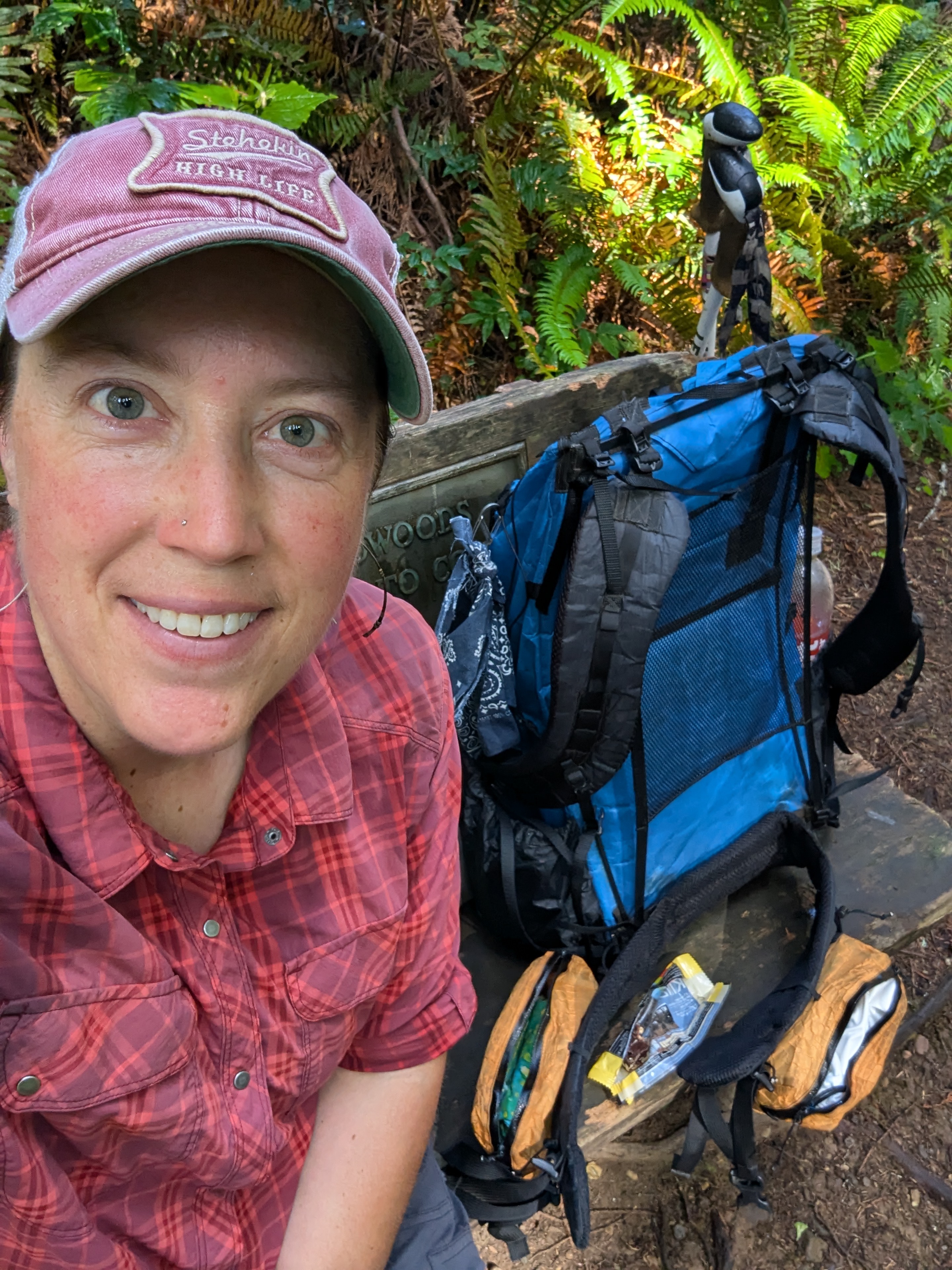 The hours click by and luckily it’s all mostly cruiser trail. I’ve got my heart set on buying a sticker at the visitor center and push as fast as I can. I roll in about 4:45pm and drop my pack near the front door. I search around for any stickers specific to Prairie Creek Redwoods State Park but most of them only say Redwood National and State Parks. It’s like 4:50 and they’re actively trying to get customers to leave. I ask a young woman if they normally have PCRSP stickers (because I don’t see any) and she responds “we have what we have.” I ask again if they normally carry them and she’s getting all flustered and argumentative. An older staff lady comes over and actually assists me, showing me the exact thing for which I was looking. Kids these days.
