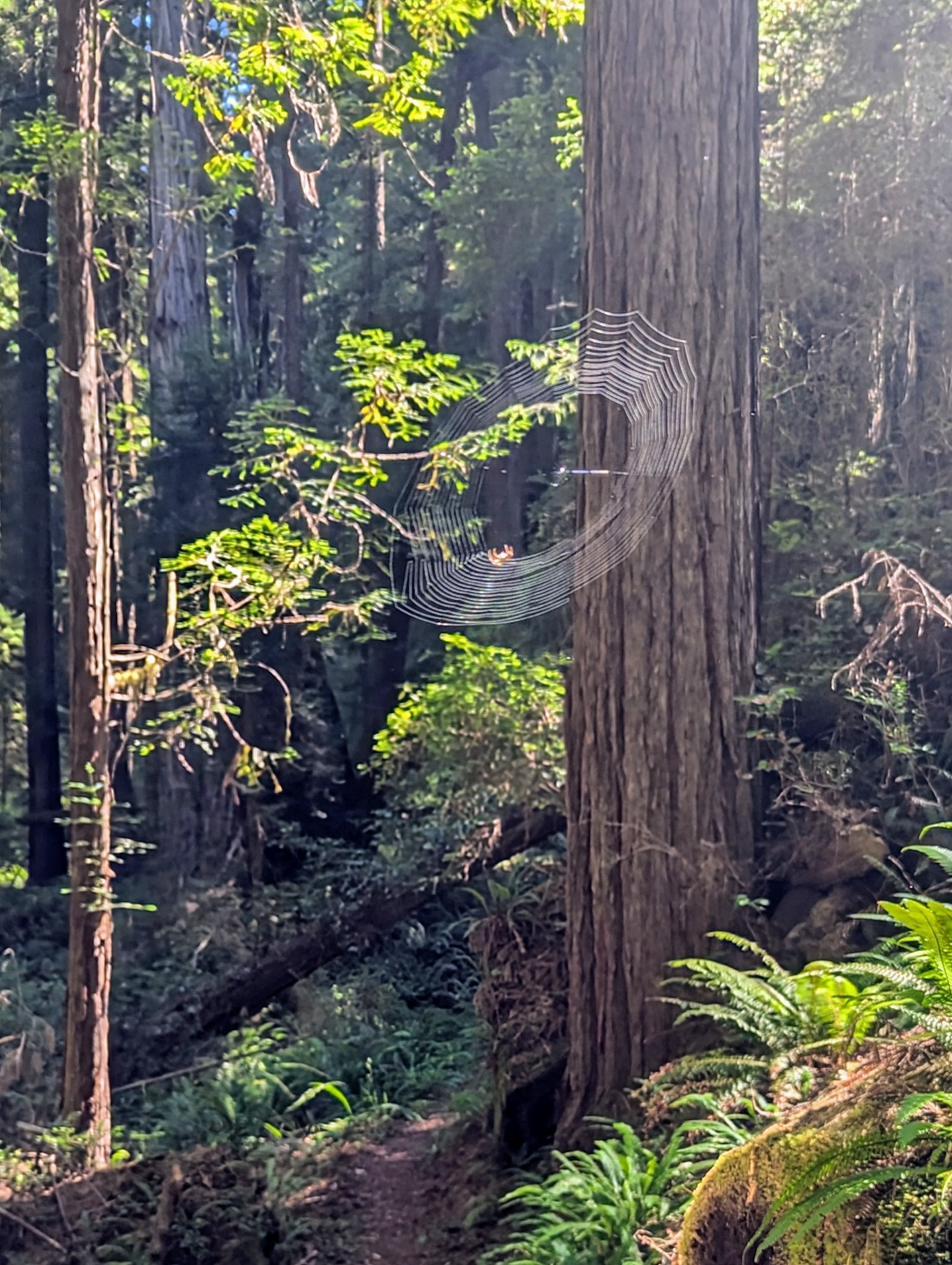 After the 45+ minute drive, I’m on trail by 8:20am climbing up the West Ridge Trail. It’s just me slicing through spider webs. I find my usual log break spot and listen to the Osprey overhead. It’s another perfect day in the redwood forest as the sun starts to cut through the fog.