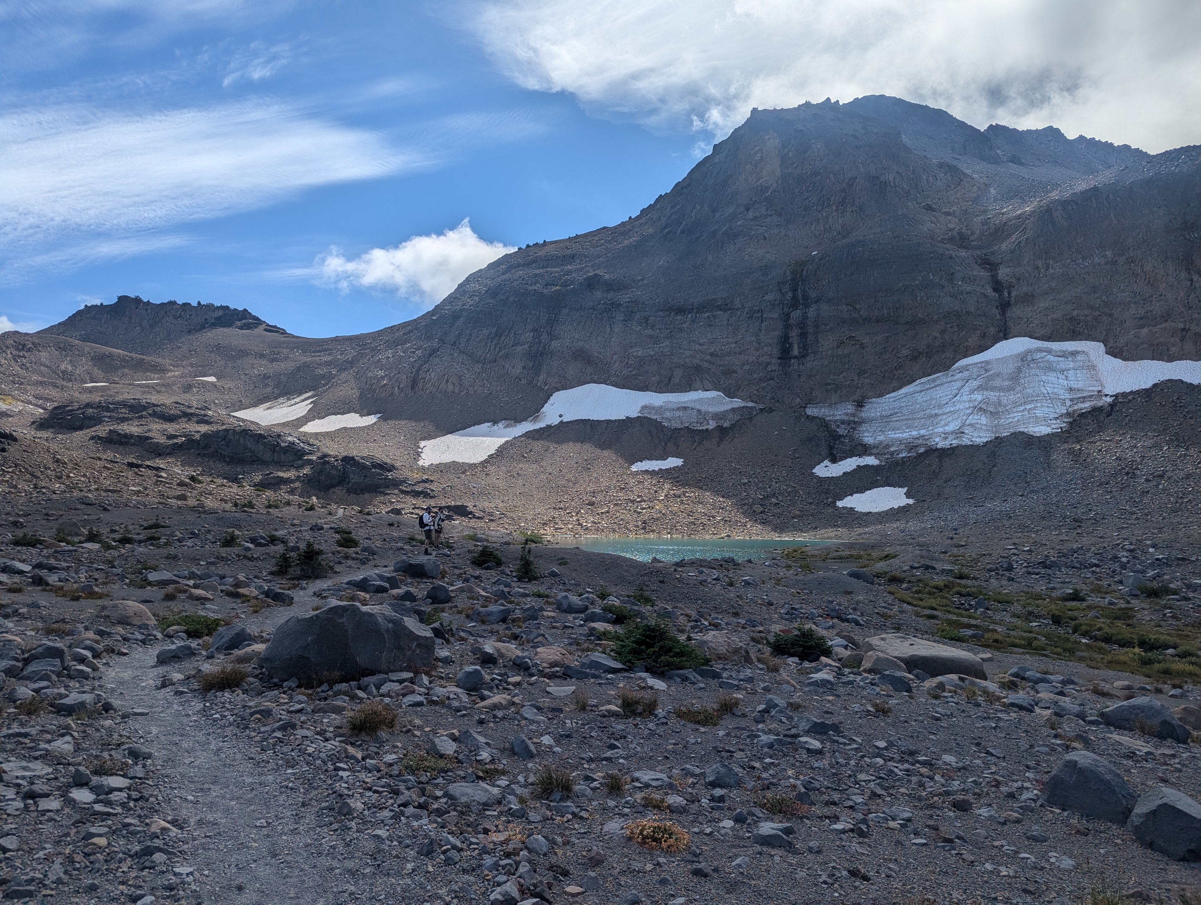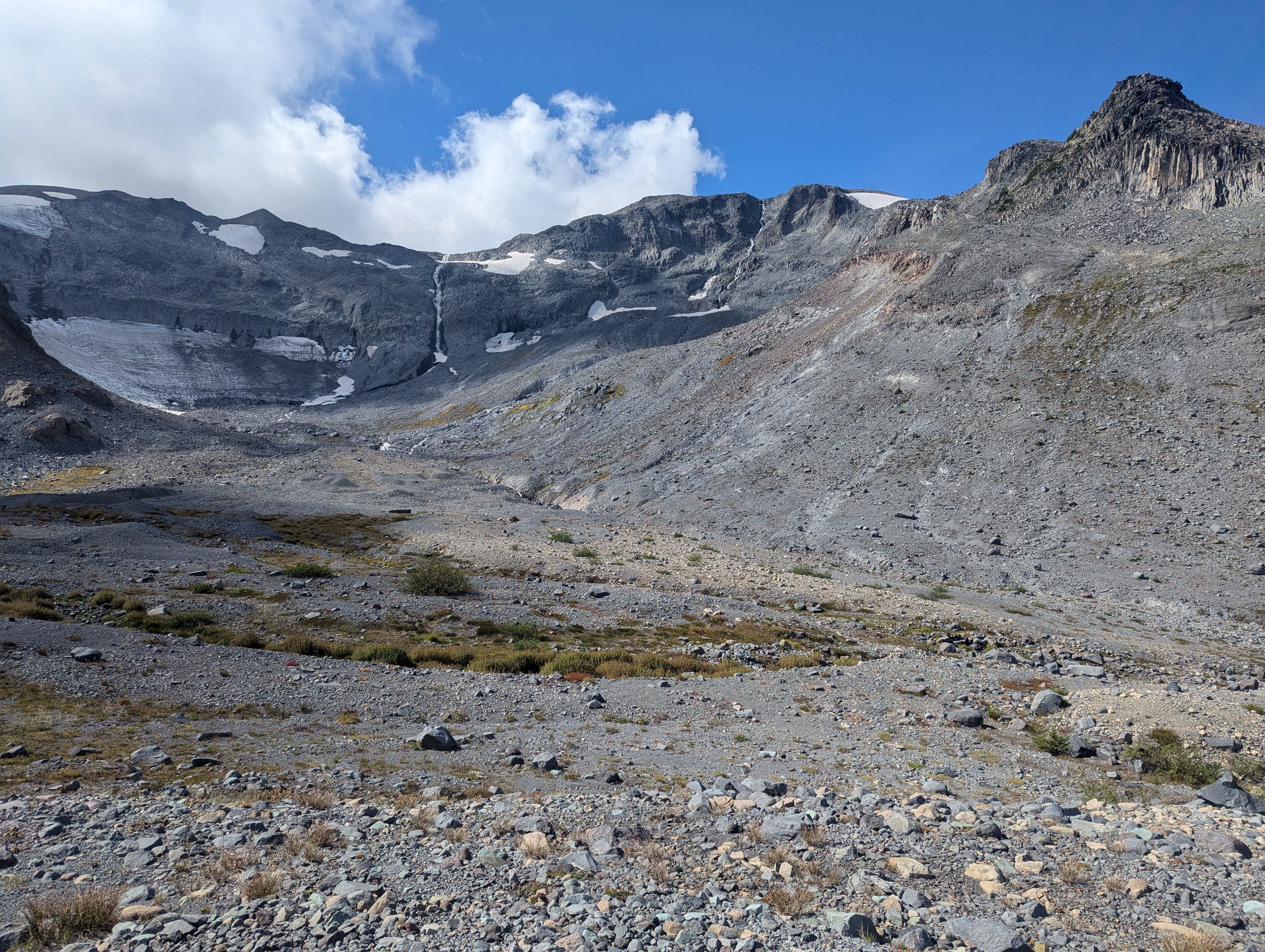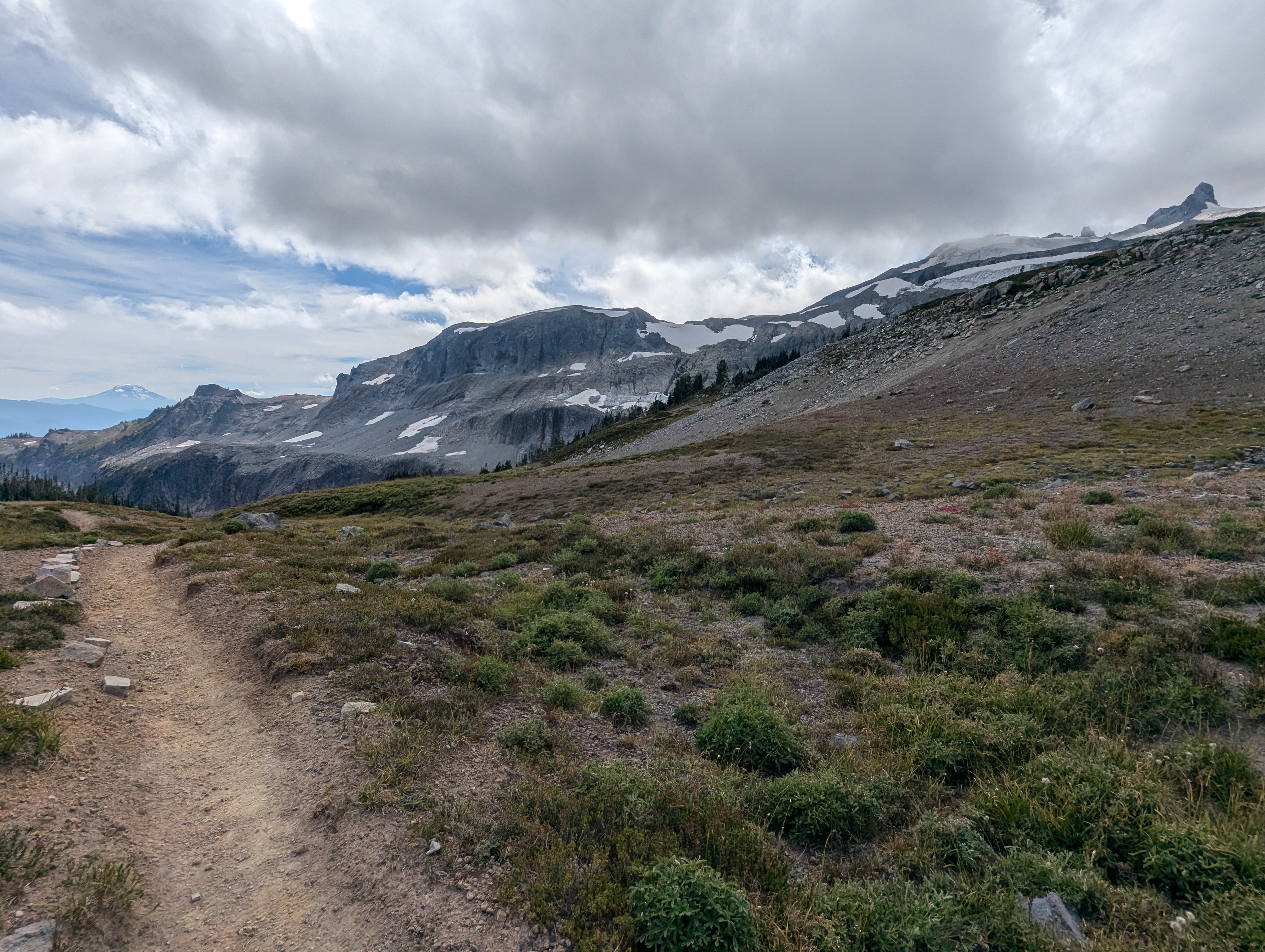 I start the climb towards Panhandle Gap past Meany Crest and no name glacial lakes. The trail winds through the rocks making me unsure of which gap I will actually crest. In true trail suspense, once I reach the wall in front of me, I turn to the right and climb some more.