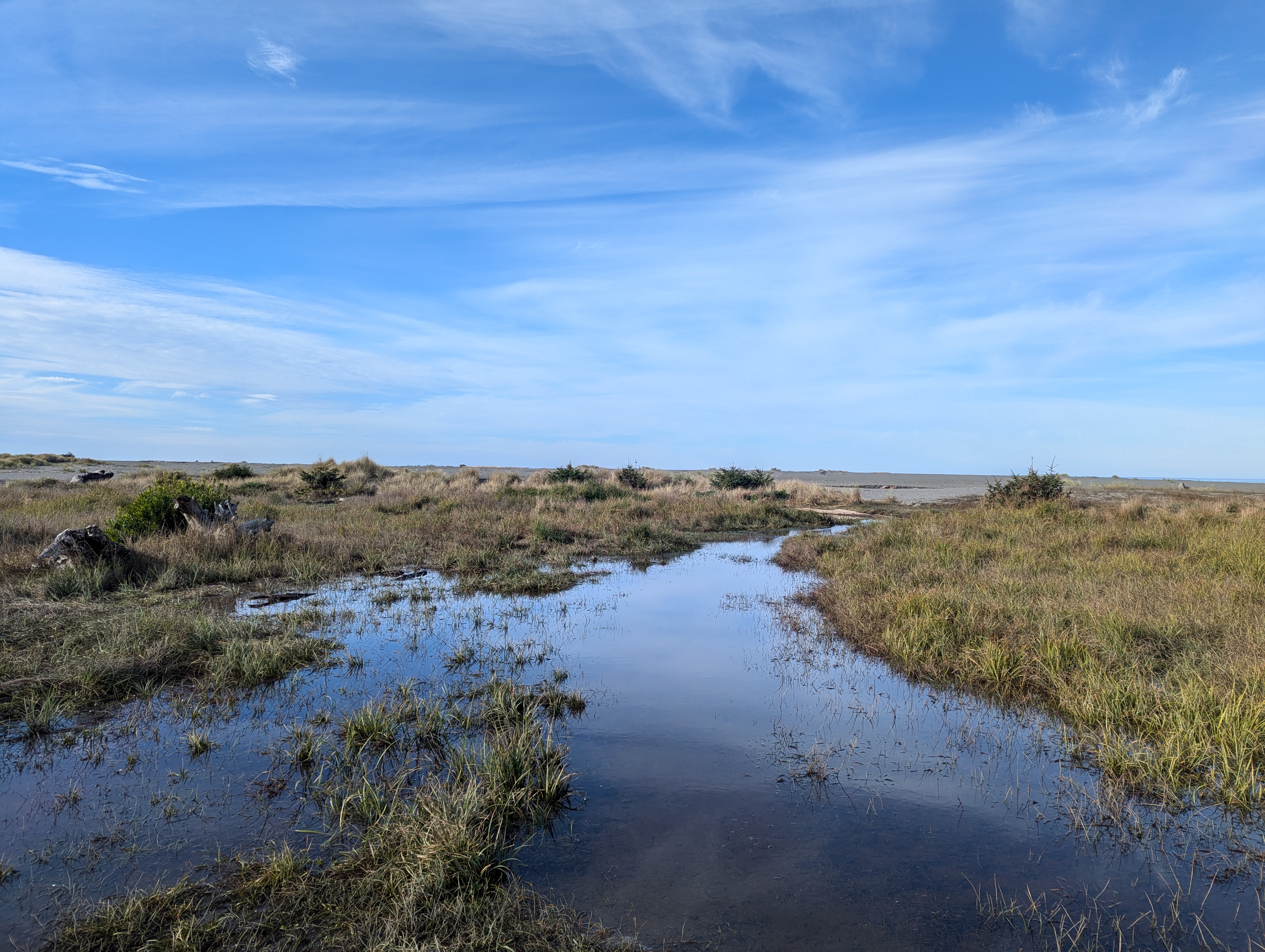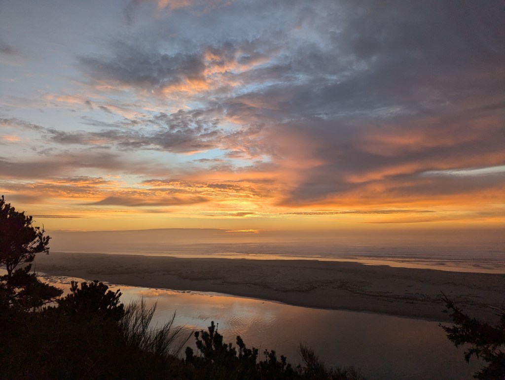 X marks the spot? My new goal is to reach the visitor’s center before they close at 4pm. I roll in about 3:45pm and buy a few more stickers. The drive home is simply spectacular as the sun glints off the ocean and lagoons. I make it back to Arcata just as the sun sinks behind the clouds.