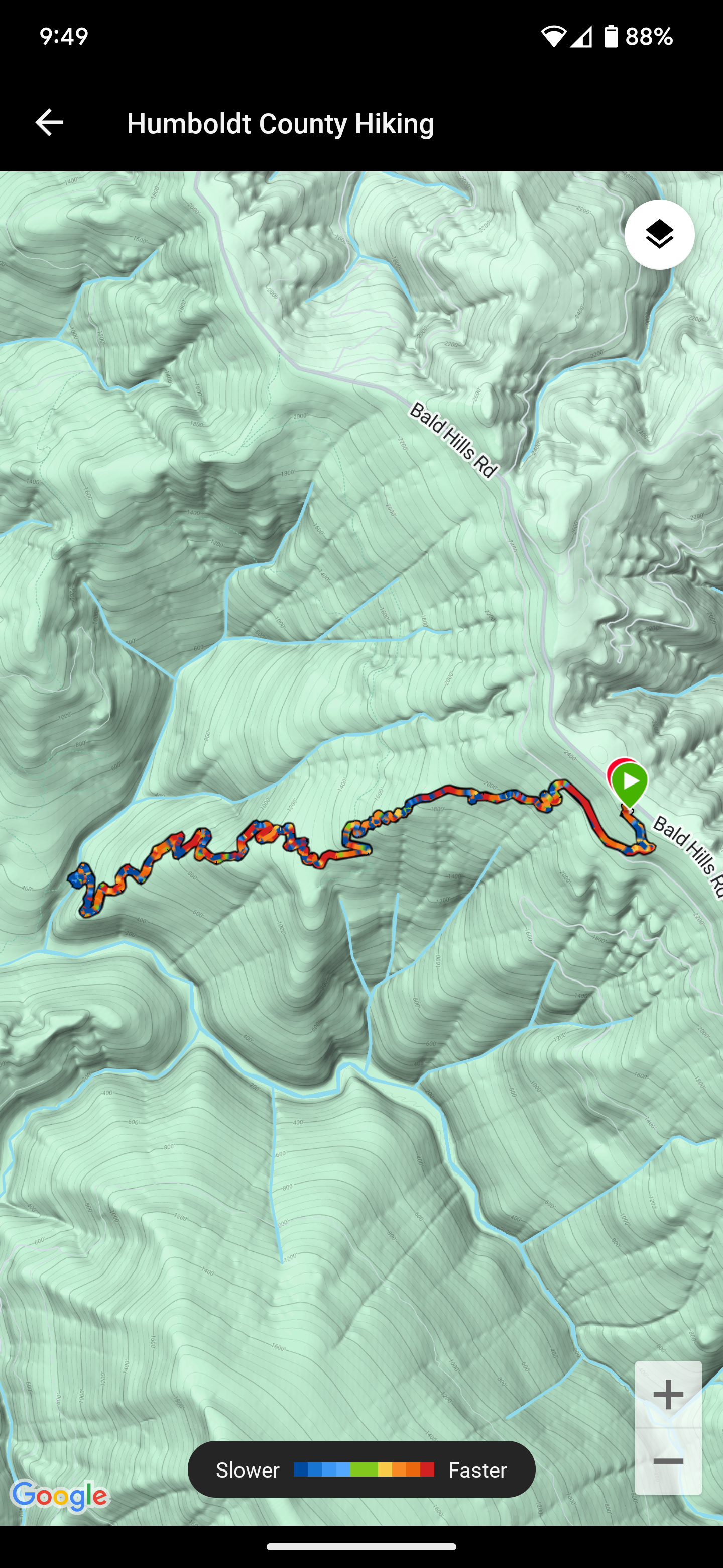 It’s 1pm as the Dolason Barn comes back into view. It definitely was a lot more picturesque in the early morning light. It’s another mile plus back to the parking lot. There are several cars there and some people just starting their walk. A few people have large lenses on tripods and I suspect that they are looking for condors. I chug some electrolyte water, eat a granola bar and a bunch of fresh strawberries. I get all my gear back in the car and just before 2pm I’m headed down Bald Hills Road to the Lyons Ranch Trailhead.