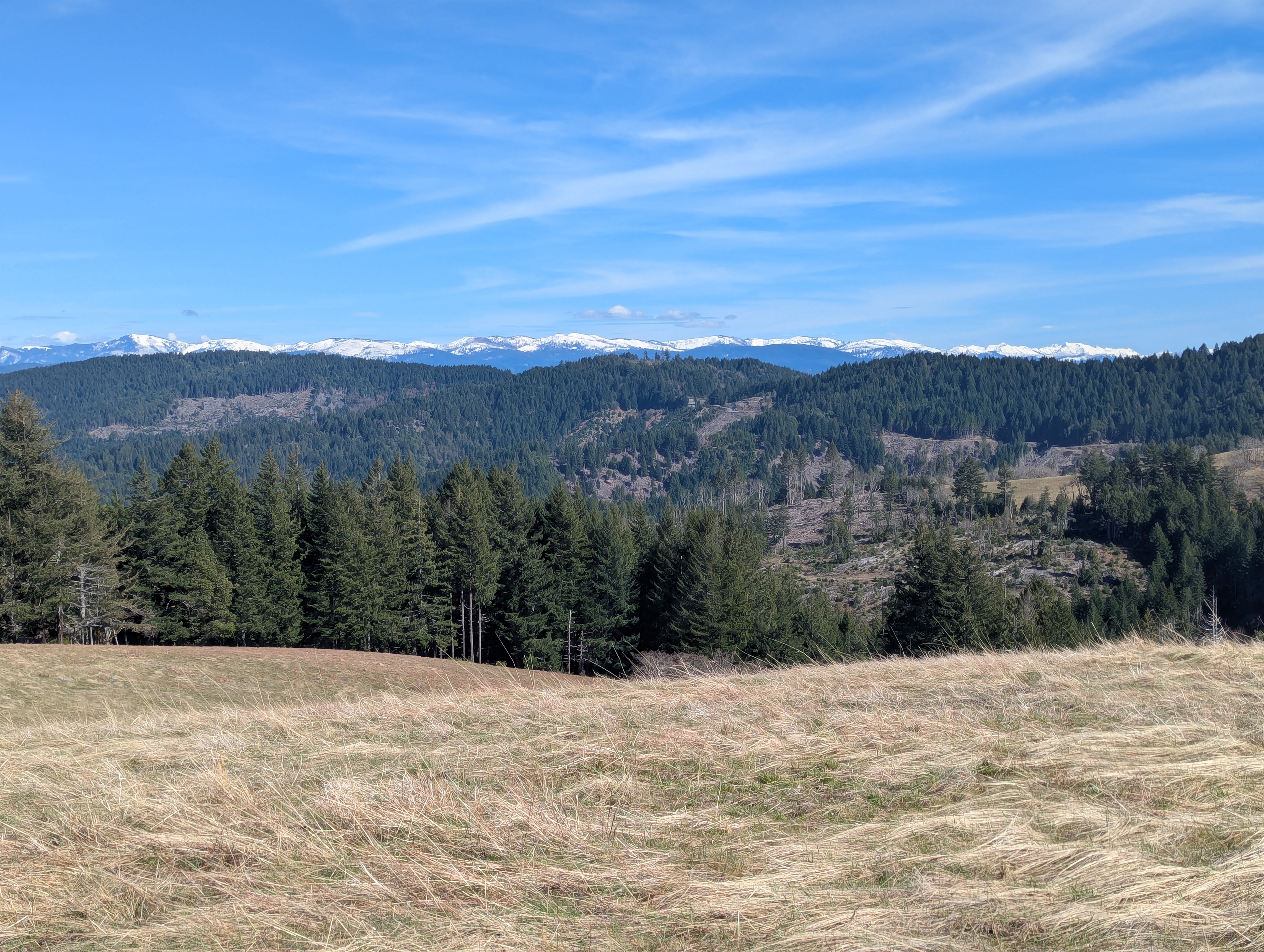 Looking East to the snow-capped Trinity Alps.