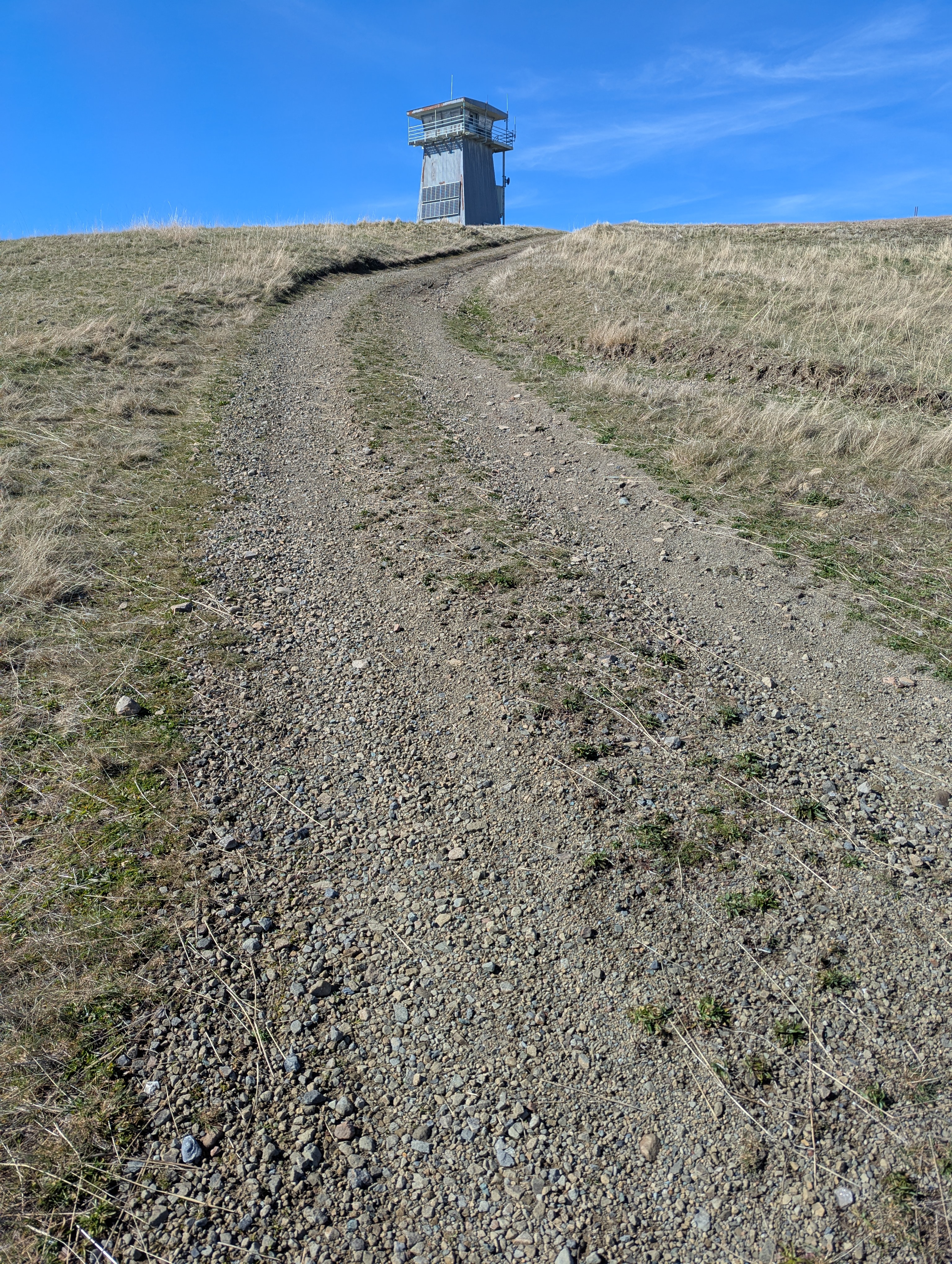 I reach a fork with a water tank. I take the downhill fork and then check my track against the preloaded gpx track. It seems like I’m below the line so I head back up to the water tank and realize that there’s another road that wraps around the bend. I follow that and confirm that my track is now on target. Wow, that was a close call! Where the hell would I have ended up if I hadn’t corrected course?