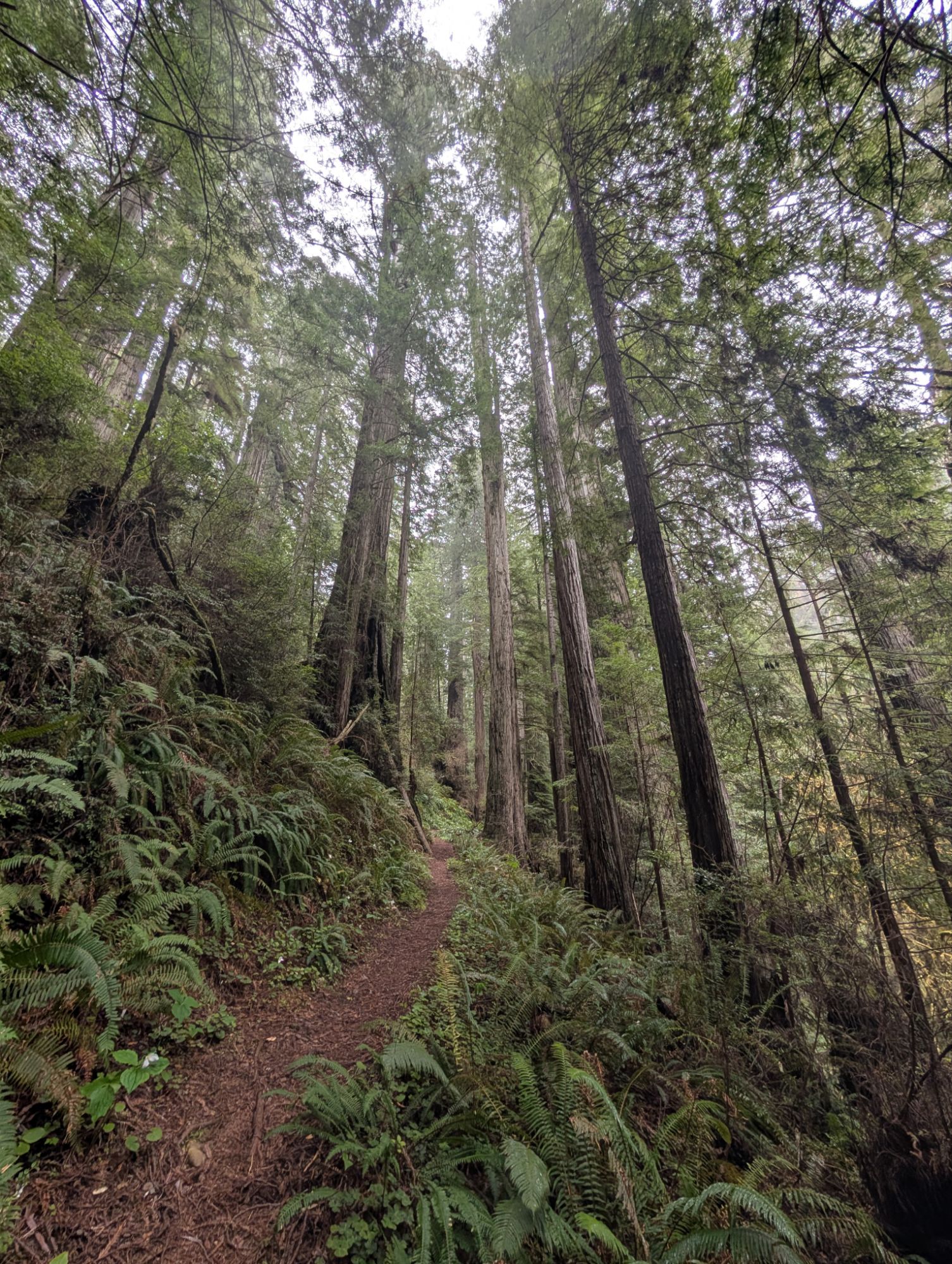 Nice trail makes its way through lovely redwoods and trillium clusters.