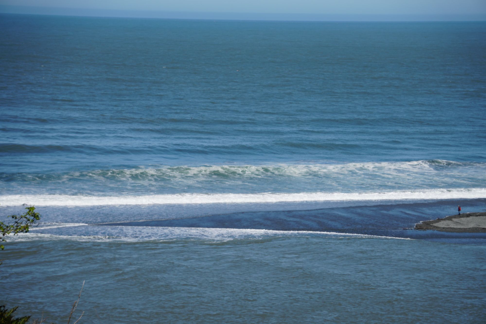 You can see the boundary between the Klamath River water and the Pacific Ocean water.