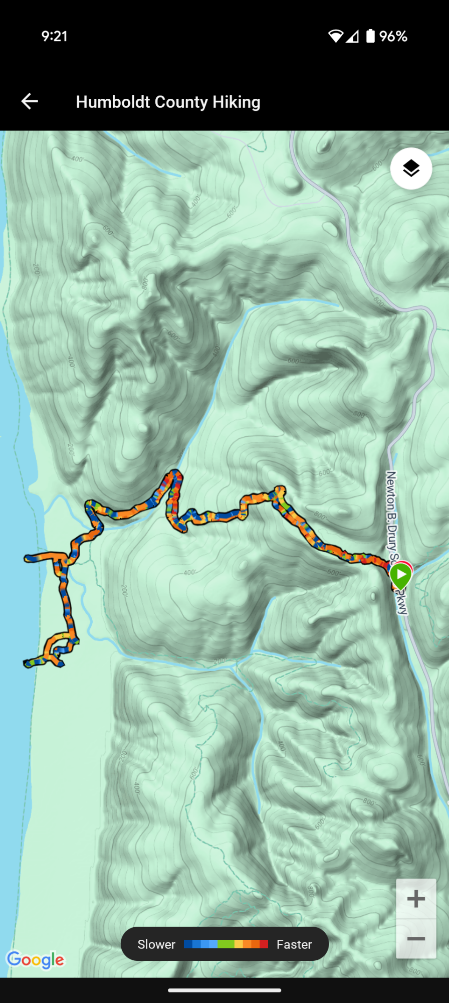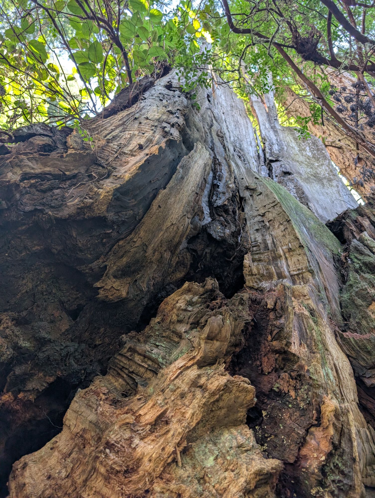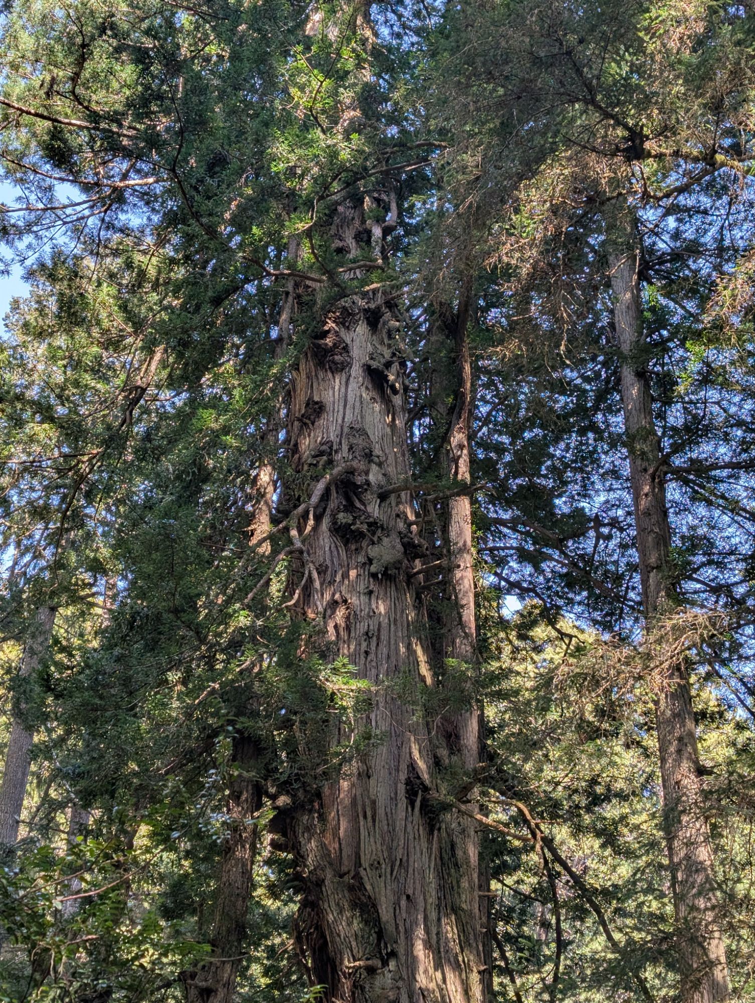 I drive the short distance from the Flint Ridge Trail back into Humboldt County and exit onto Drury Parkway. I park at the Ossagon and Hope Creek Ten Taypo Loop Trailheads. From the interpretive sign: “The Pacific Coast is essential to Yurok life. The Ossagon Trail once connected the historic coastal village of O sey-gen with inland communities along the Klamath. Family and trade relationships connect people of the coast (Ner-er-ner) with those on the river (Pue-lik-lo’)