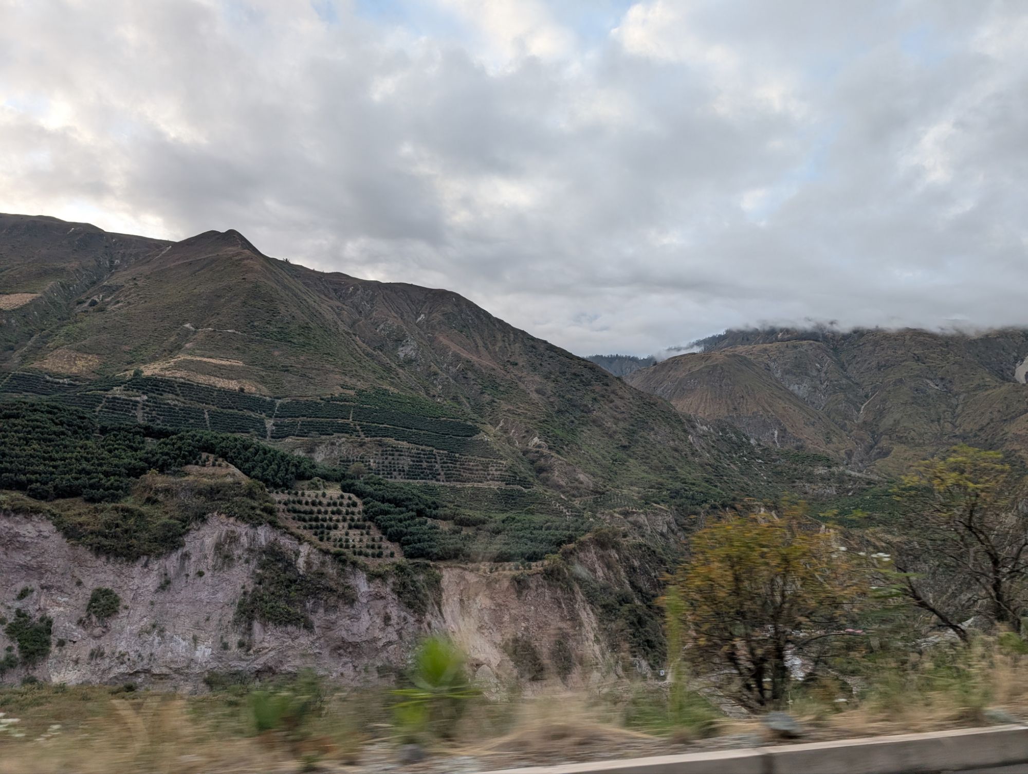 About 7 am we stop briefly in Mollepata for a bathroom and a few last groceries near the center square. A pack of dogs run through the plaza deep into a fight. Dust flies as one dogs gets rolled hard. They exit just as fast as they entered with howls echoing off every side of the square. Our van climbs and climbs around dusty blind corners, past bizarre outcrops of eucalyptus and perfectly terraced hills.