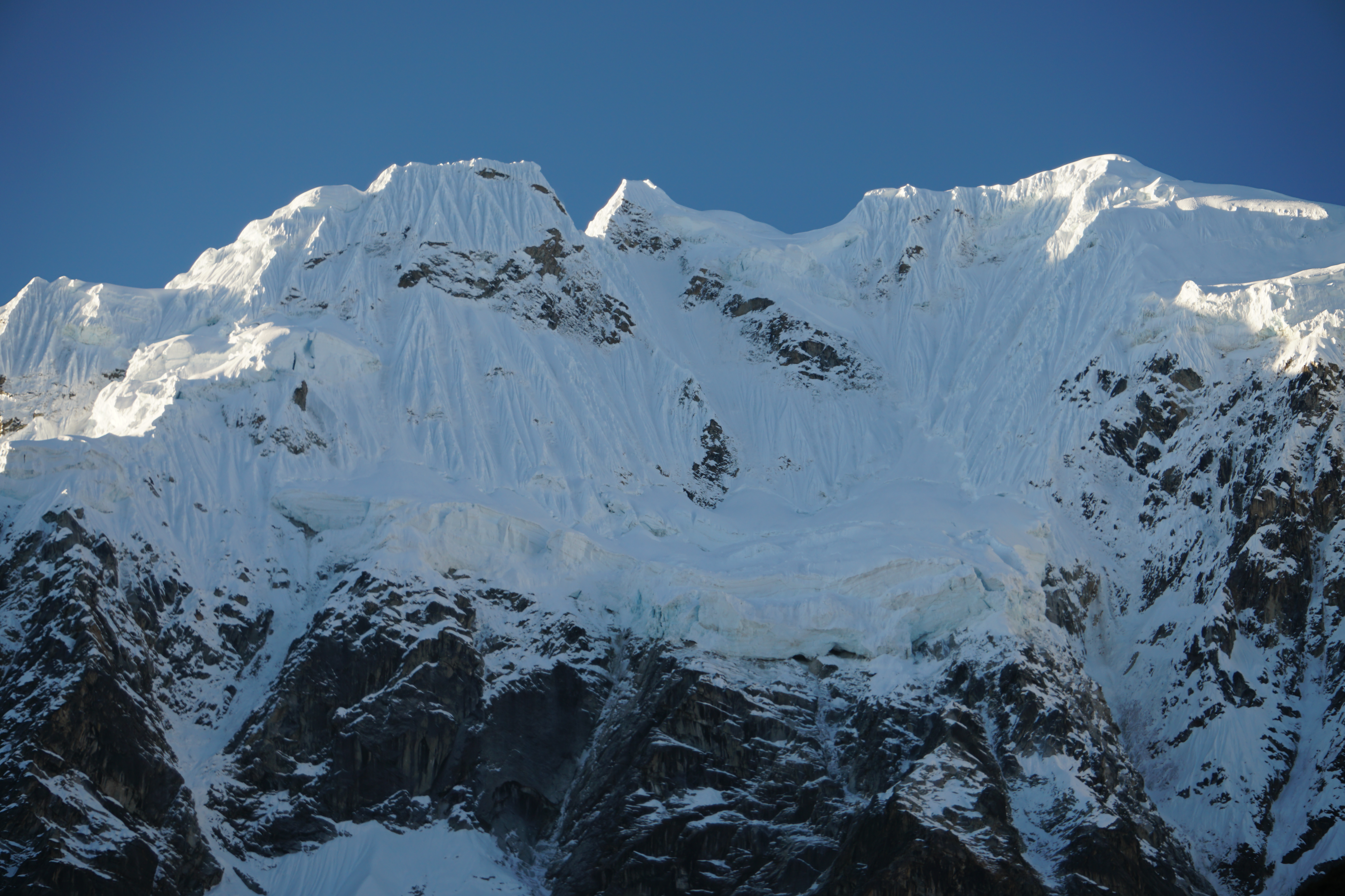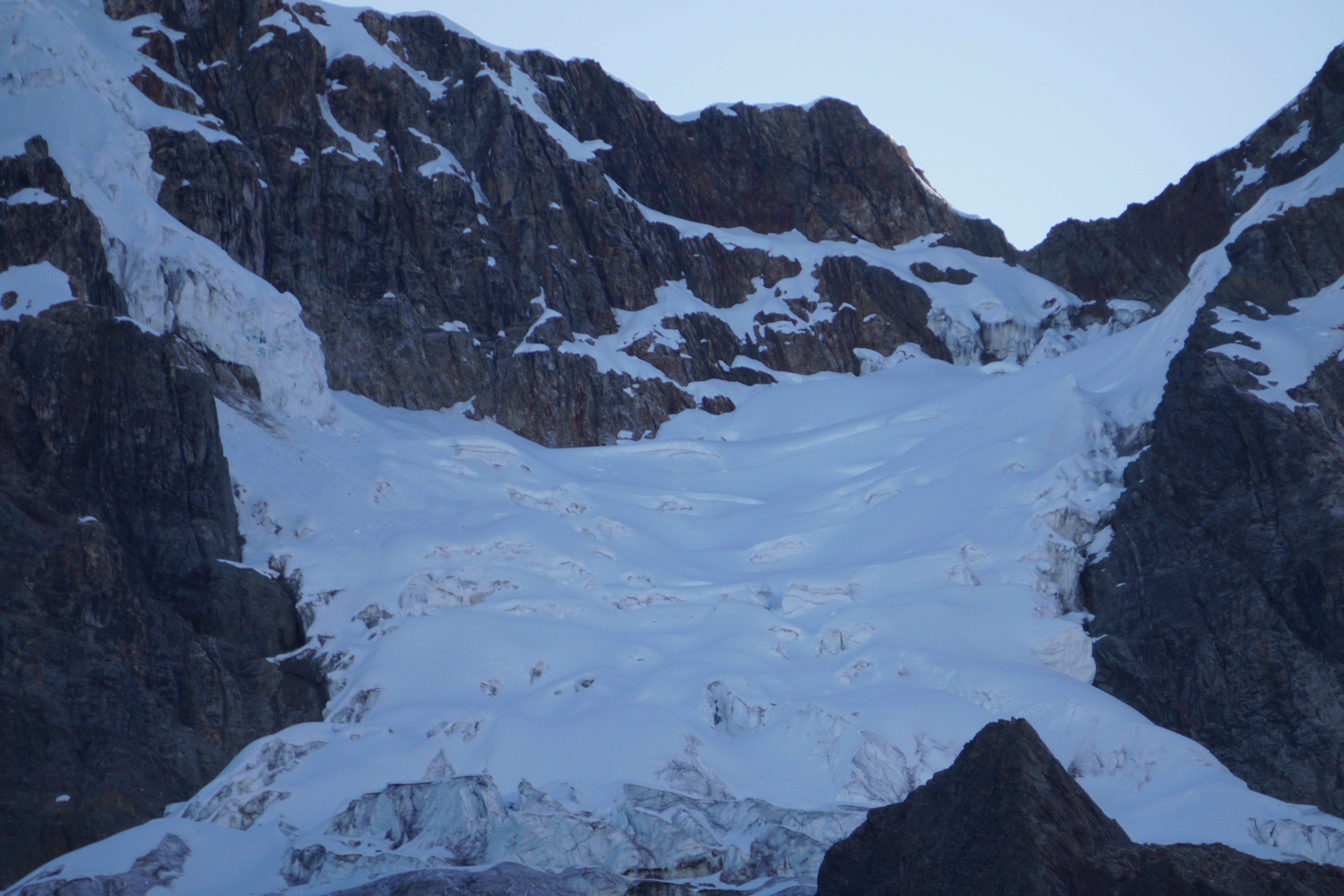 Our lunch break is about one hour and I eat as much food as I dare, knowing that I still have climbing ahead of me. It’s so hard for me to climb on a full stomach. Add in the elevation for an extra challenge. We’re at about 13,800 ft. and there’s nothing but up. Despite adding my alpaca layer during lunch, I’m sweaty enough that I have become chilled. I hesitantly replace my alpaca layer with my patagonia wind jacket trying to gauge the balance between needed warmth and sweat. At 3:30 pm we continue our ascent and leave behind the crew to quickly pack up all the gear again.