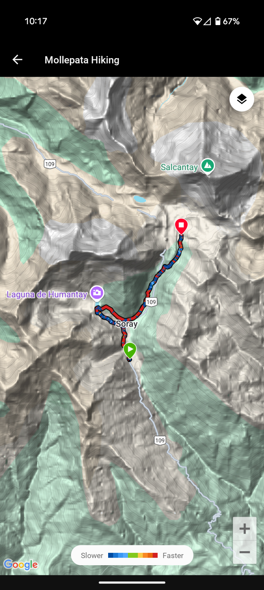 The road is fairly level until we reach the sign for Soraypampa. Then it’s time to climb to Humantay Lake. The sun is beating down hard and I am sweating bullets under my steamy sun hood. I’m happy to stop and take breaks not only to catch my breath but to see all the glorious flowers. Despite its limited Peruvian database, the Merlin app helps me identify a Rufous-collared Sparrow. We climb for just over an hour, crossing a labyrinth of trails, before cresting the ridge at Humantay Lake. A sea of people crowd the horizon and my senses are flooded with the chatter of a cocktail party.
