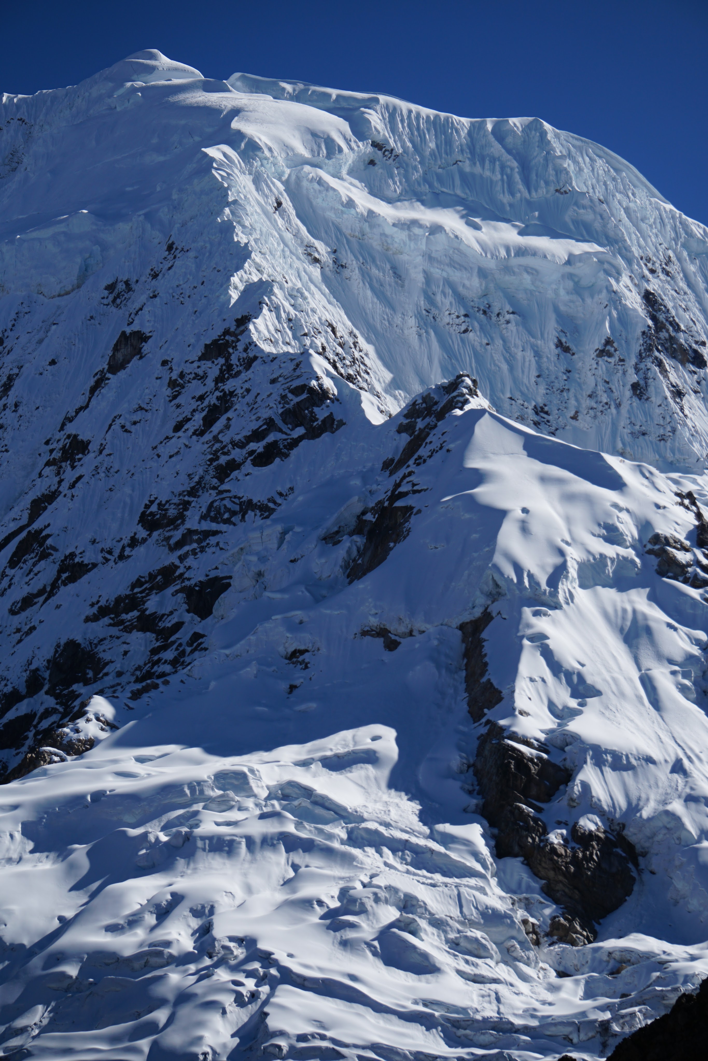 Above: small ice fall (left) and Apu Salkantay summit (right).