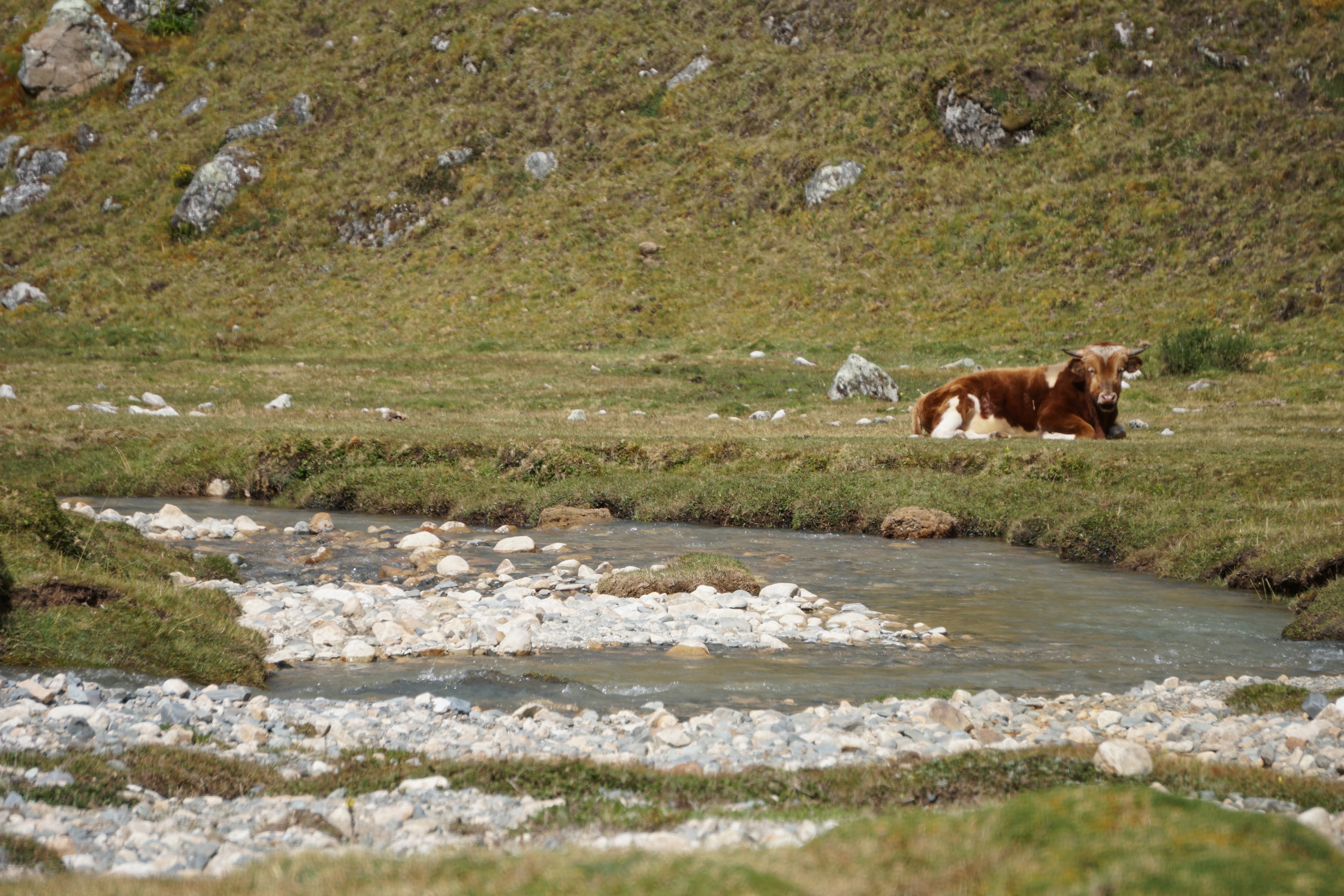 It’s cool how the Jamesonia ferns look like little cobra snakes sticking up their erect heads. Andean blueberry Vaccinium floribundum or mortiño is highly reduced in size at this elevation. Ummm, sure hope that beautiful bull stays seated on the other side of the creek.