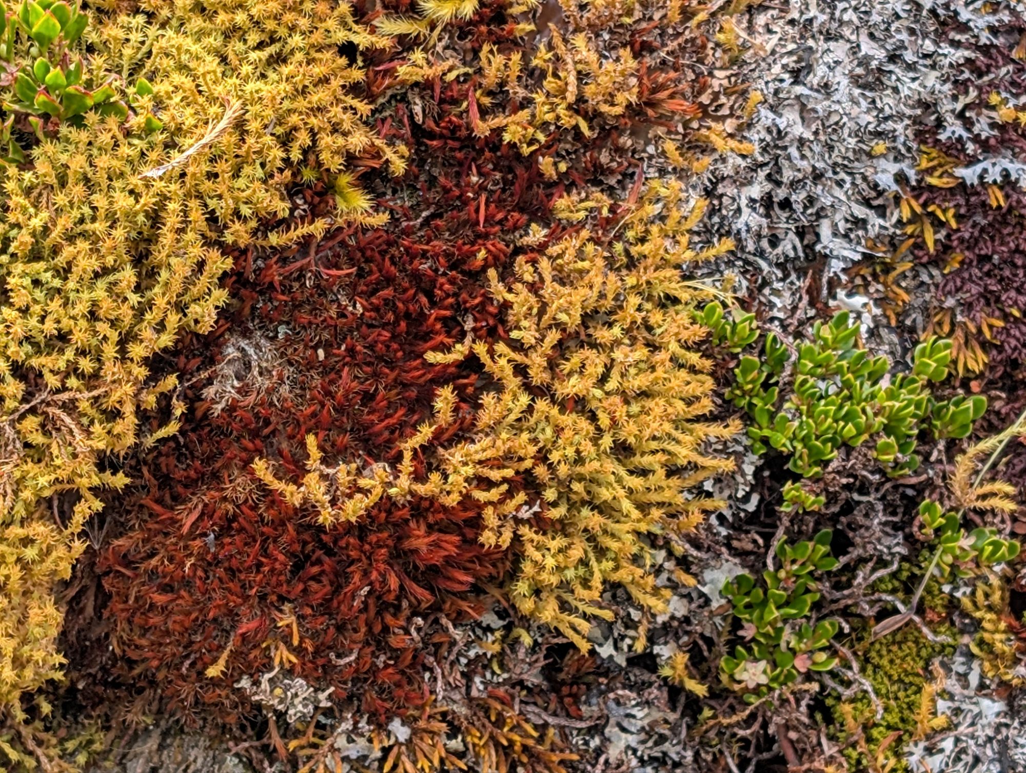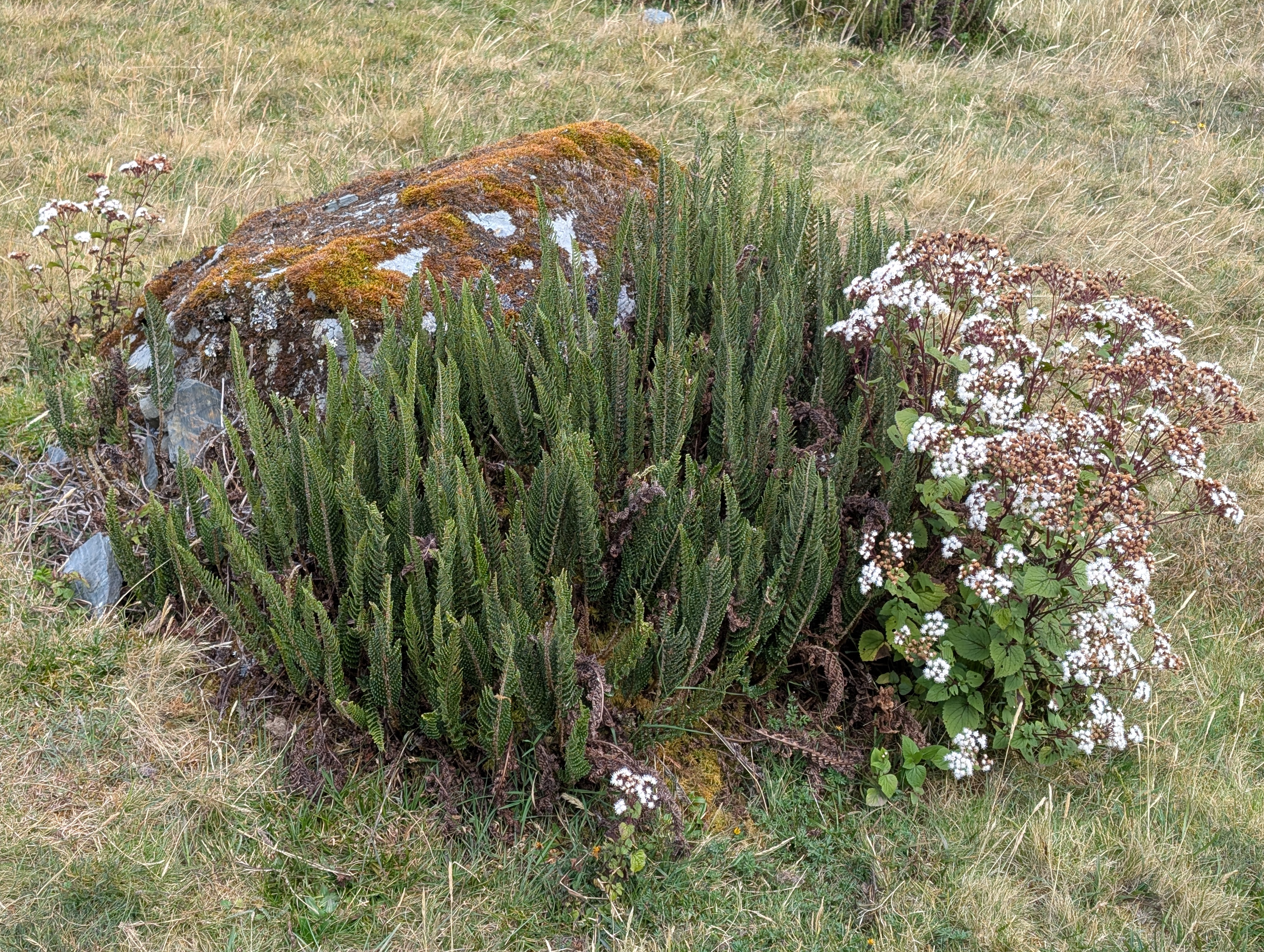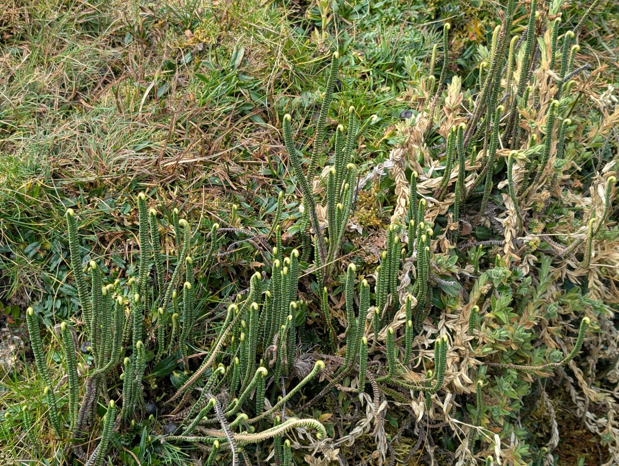 Our lunch spot soon slips out of view as I find all sorts of new wonders before me. Colorful peat or sphagnum moss, Elaphoglossum mathewsii fern and some more Ephedra americana. The black spores of the Elaphoglossum fern are distinct and look like a serpent tongue.