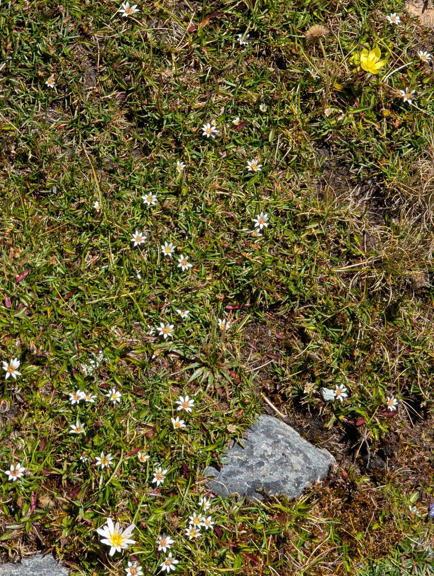 Above: Gentians (blue), Saxifraga? (yellow), Werneria (white)