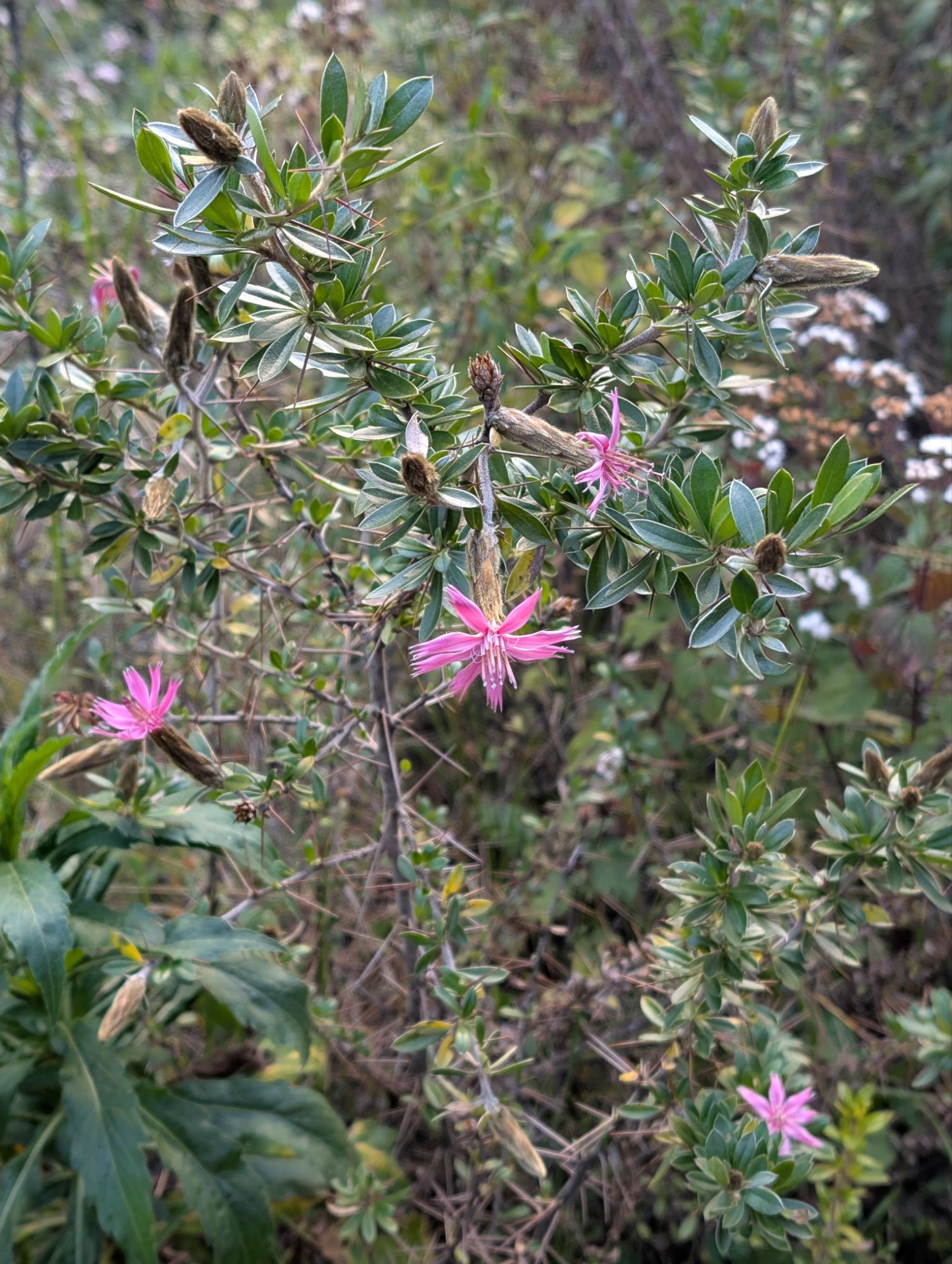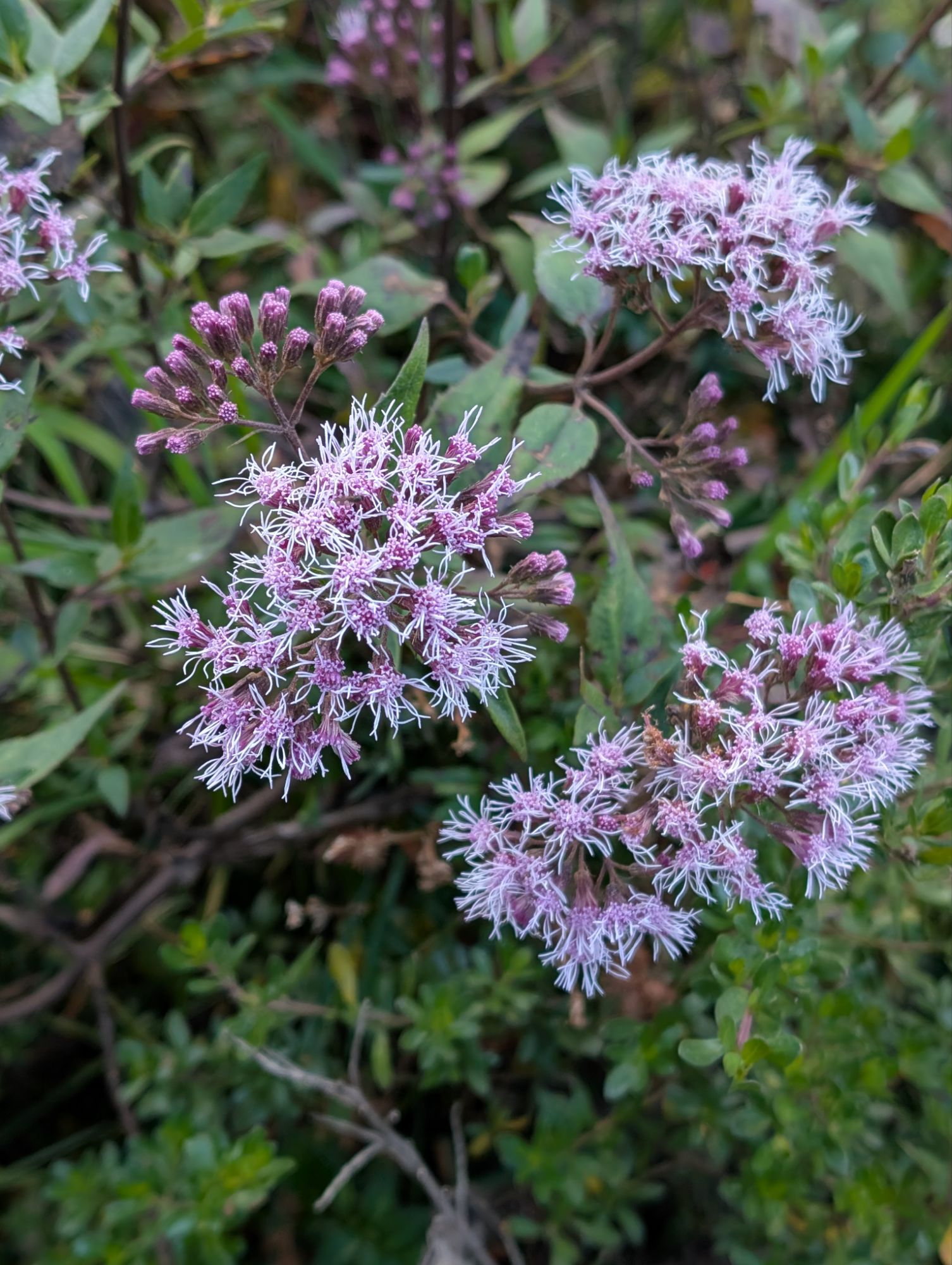 5 pm clicks by and I do start to wonder how much farther. Purple ageratina and pink Barnadesia artfully distract me since I’m definitely starting to feel all the descent in my legs.