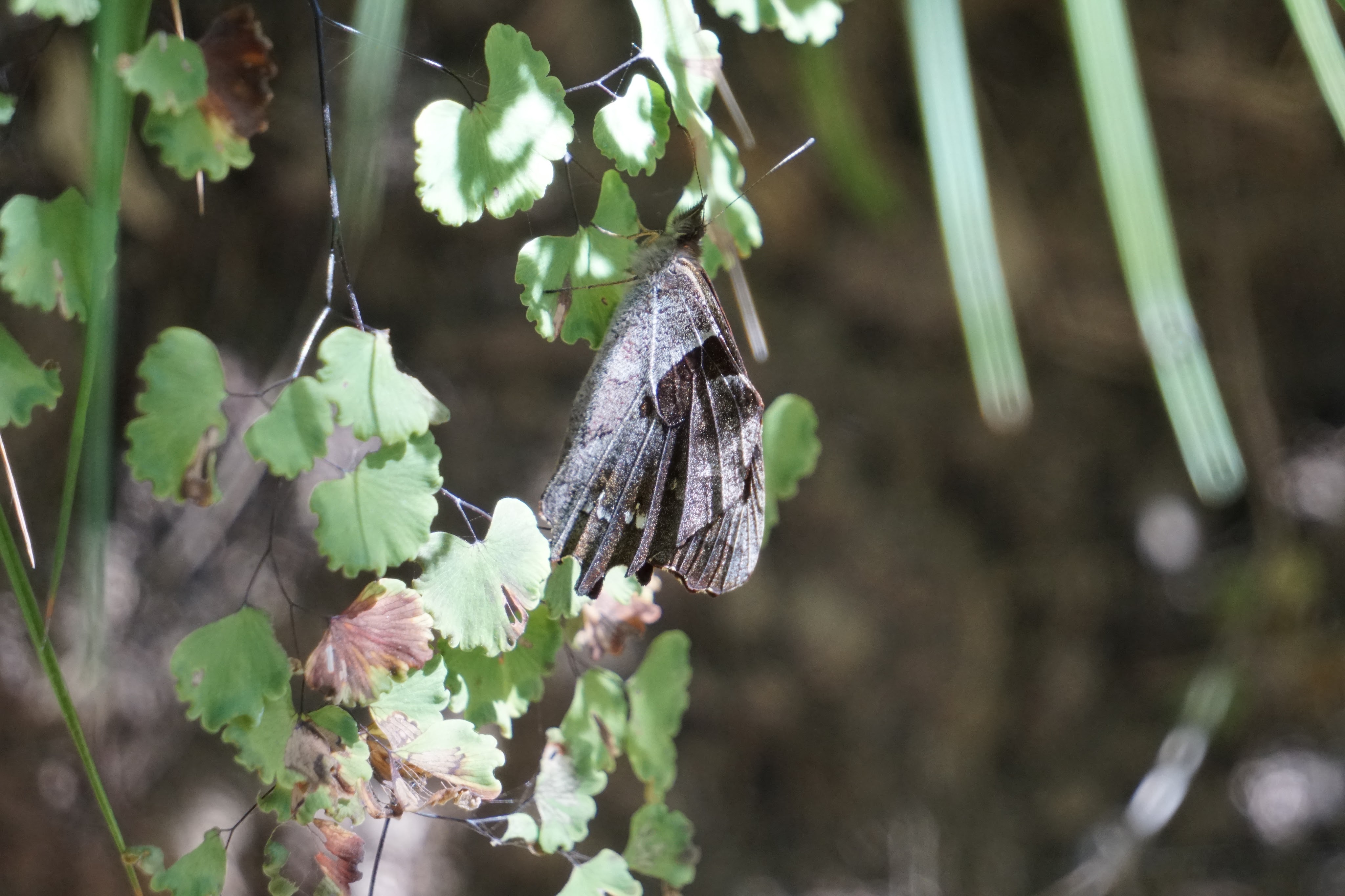 Below: Cool collection of Bromeliads (maybe Tillandsia) and fern, perhaps a young Swallowtail butterfly on maidenhair fern