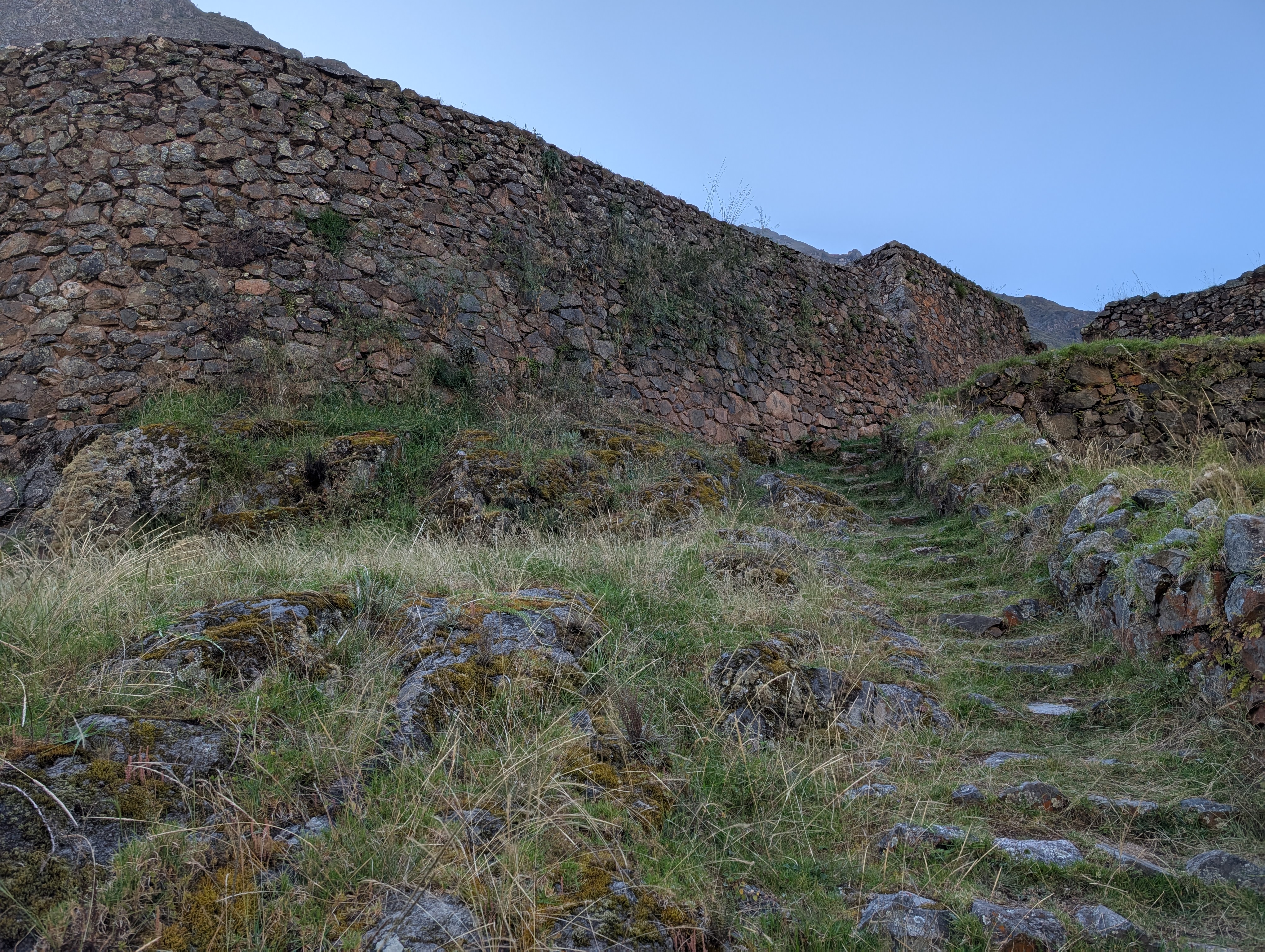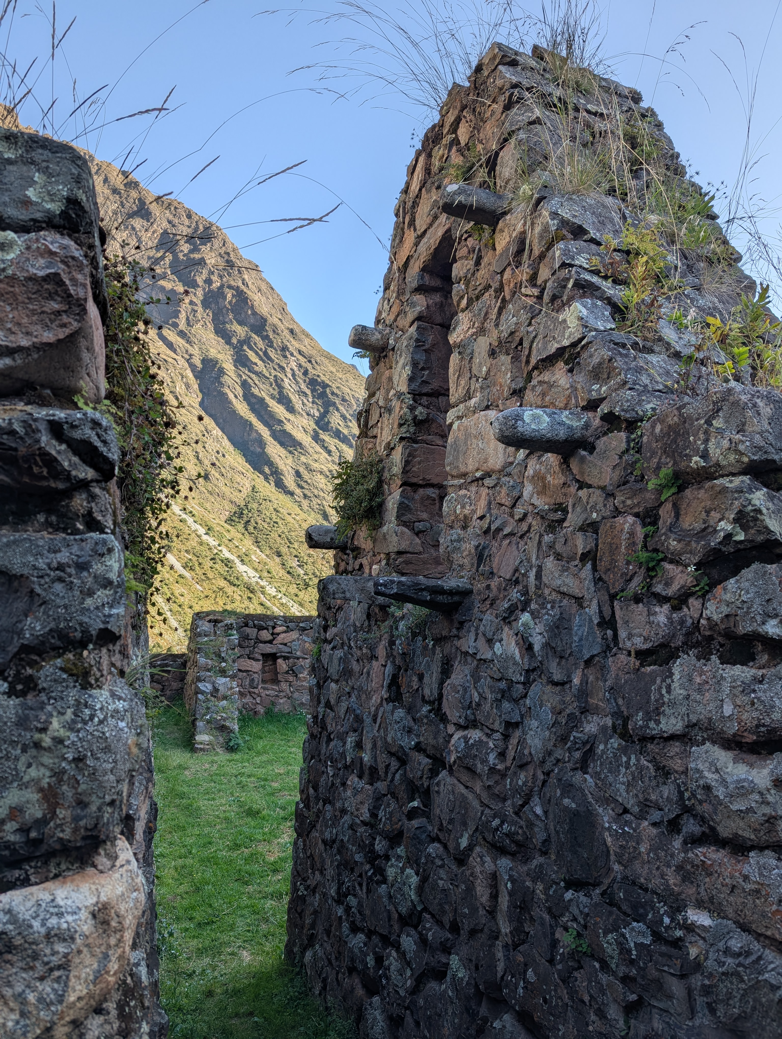 After an hour of climbing since Ayapata, we reach a window in the unca forest with a view back down the canyon. Y’all, these stone stairs are no joke. And the steps are big too. It definitely takes a lot of work to hoist myself up each step. If I may generalize, Peruvians tend to be shorter. As descendants of the Inca, one could guess that they were shorter people too. So, why are the steps so large? I pose this question to Elizabeth and she says that the Inca chaski used to run the trail. Chaskis or chasqui were specialized runners chosen for their unique agility, who were tasked with relaying messages between stations. Because the chaski would only run a short distance, messages could move hundreds of kilometers in a day.