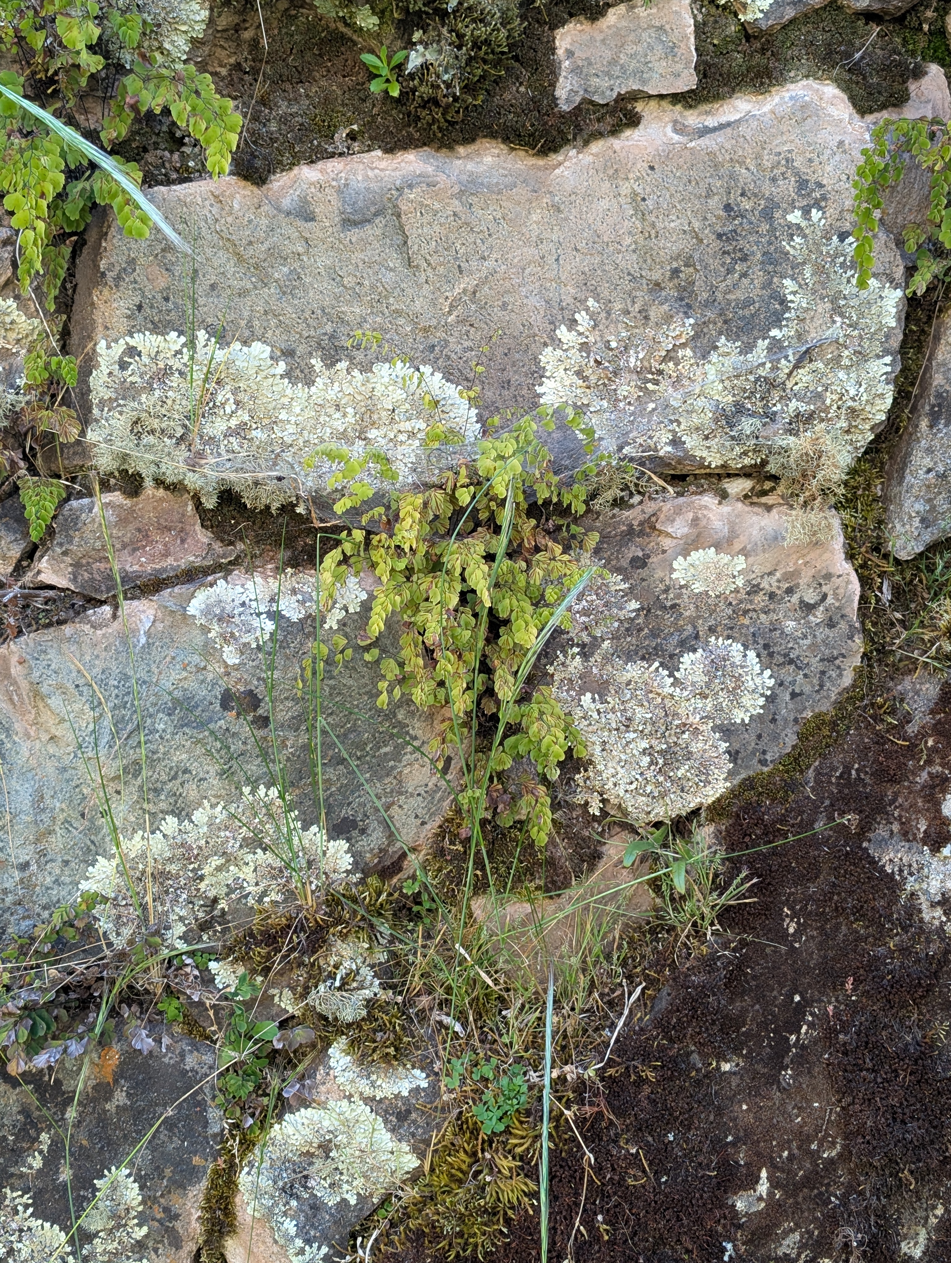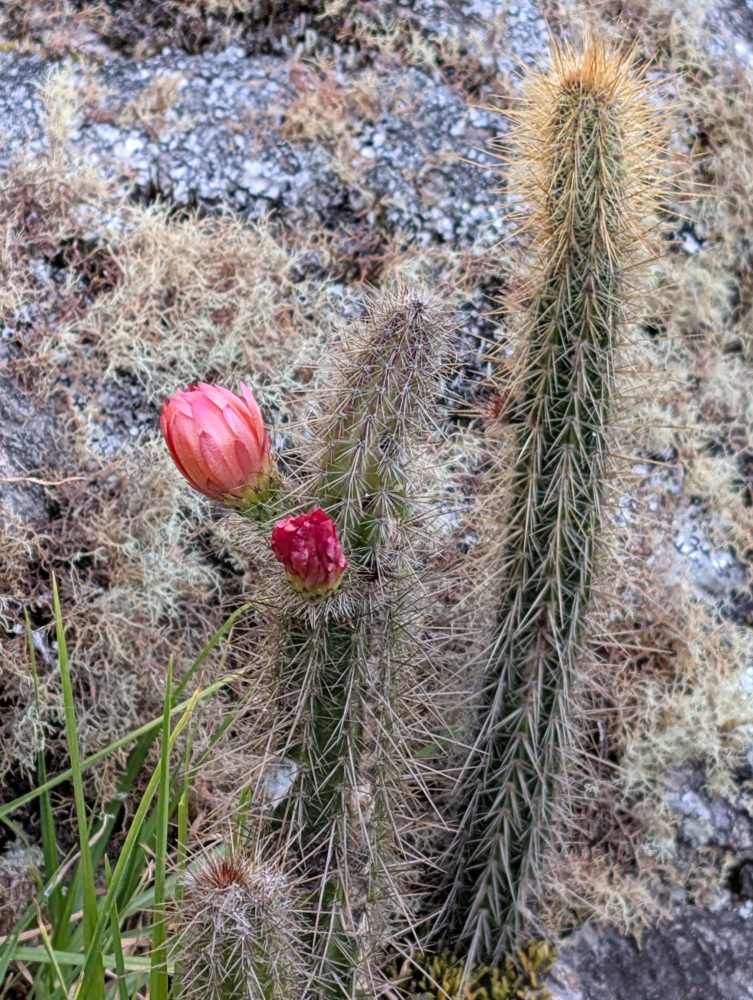 Above: Adiantum fern and several lichens, Arrojadoa cactus
