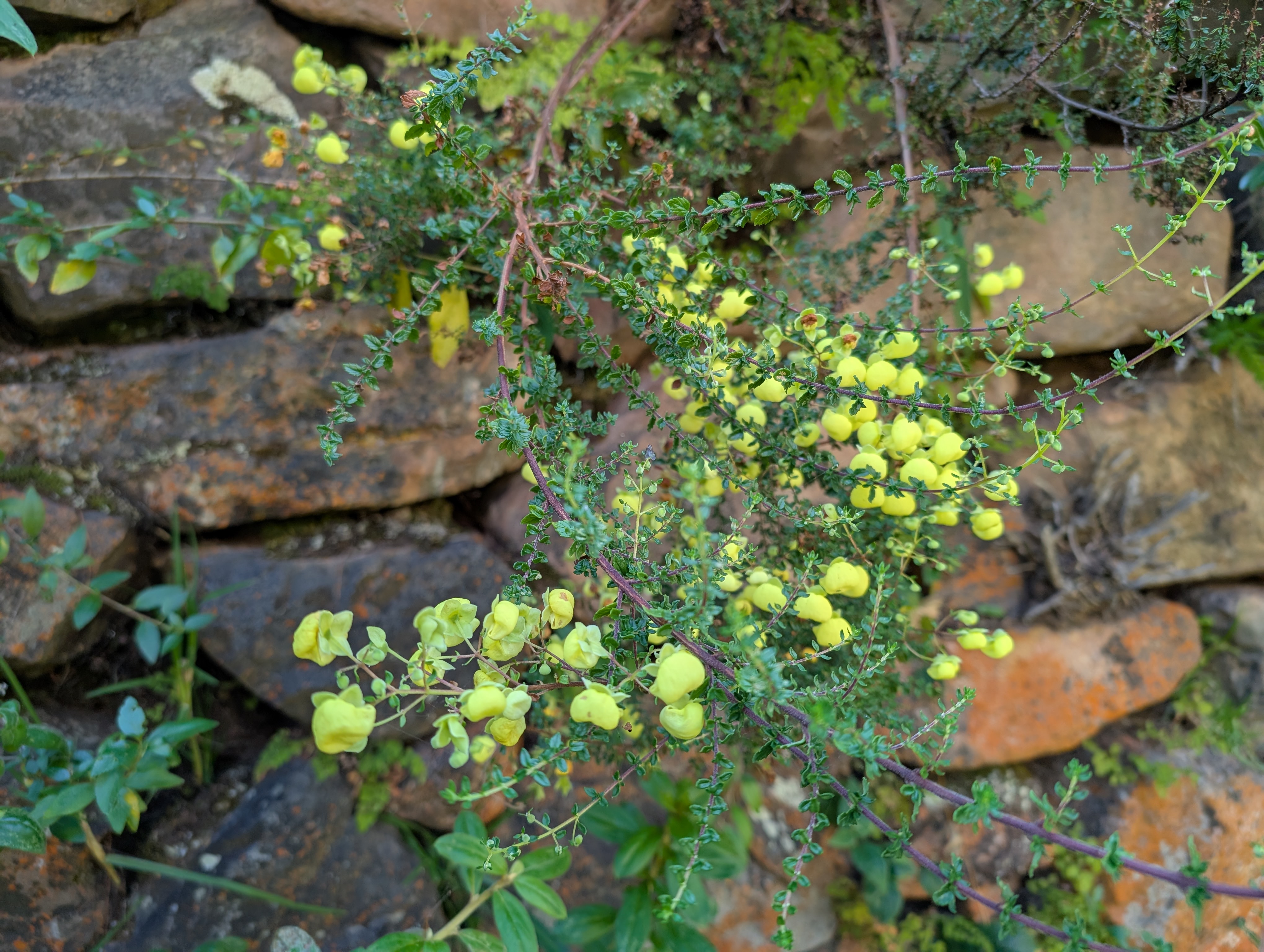 Below: Calceolaria and the introduced Genista french broom