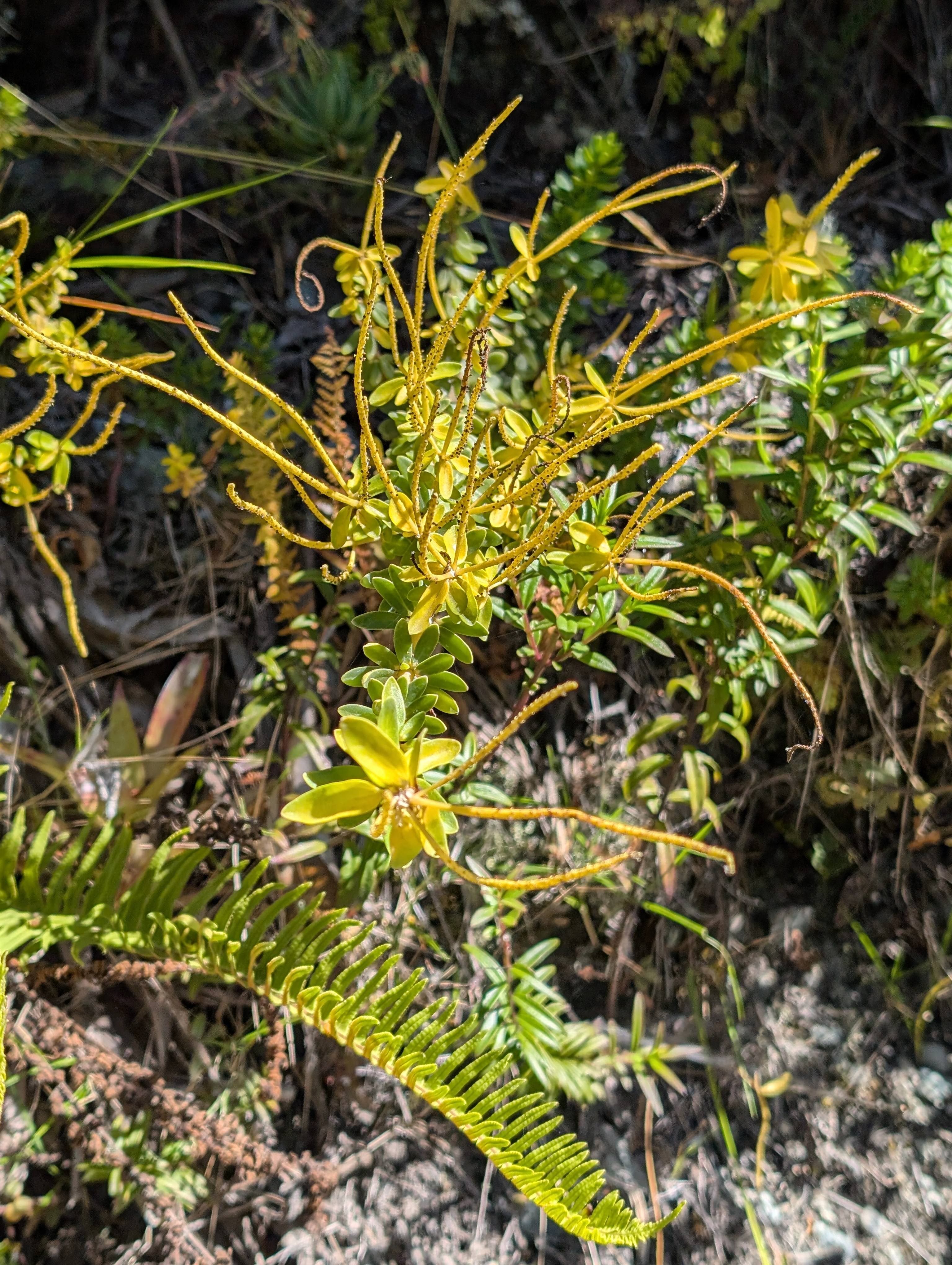 Below: high altitude succulent growing with lichens and moss. Possible chaste tree?