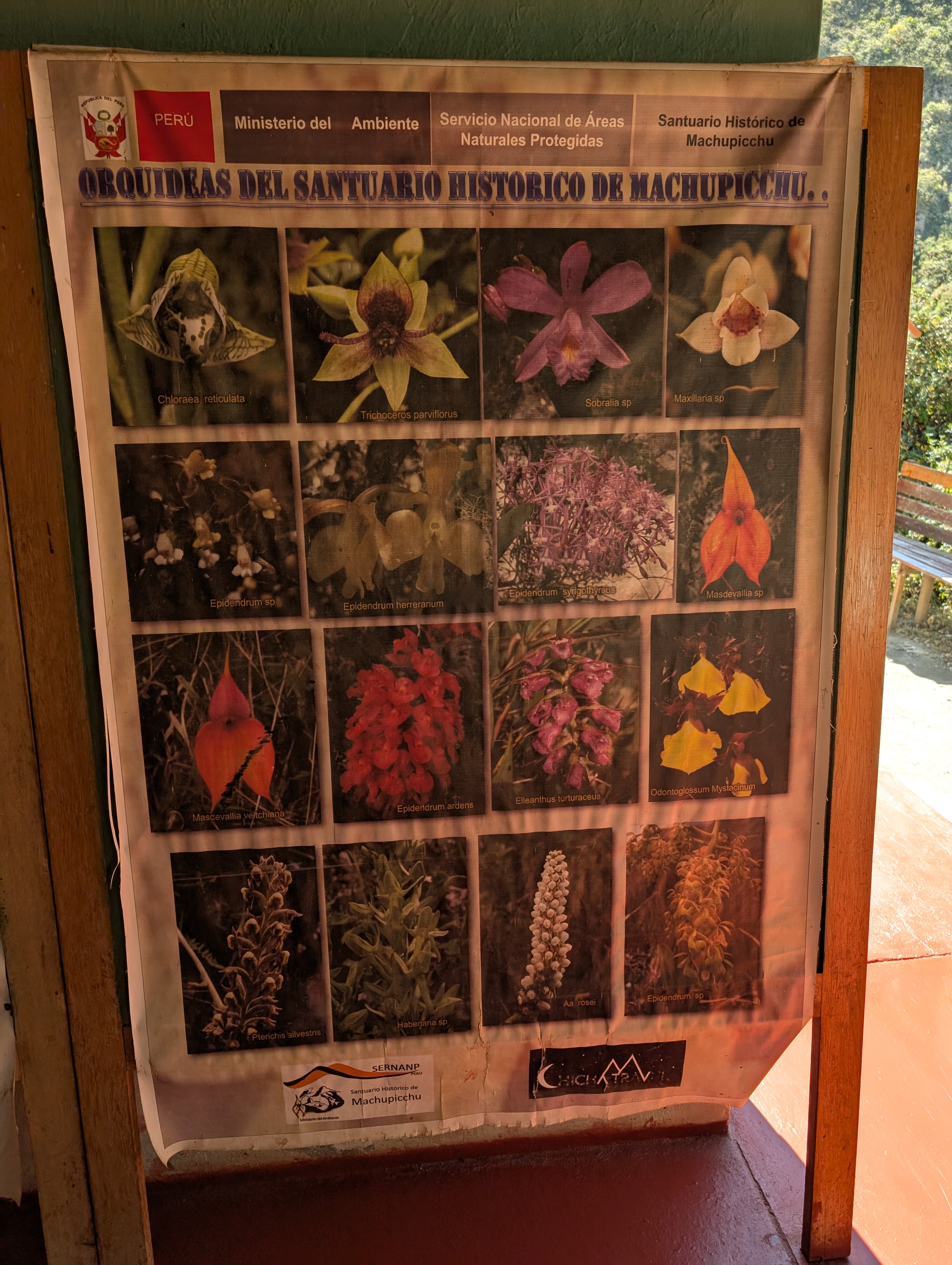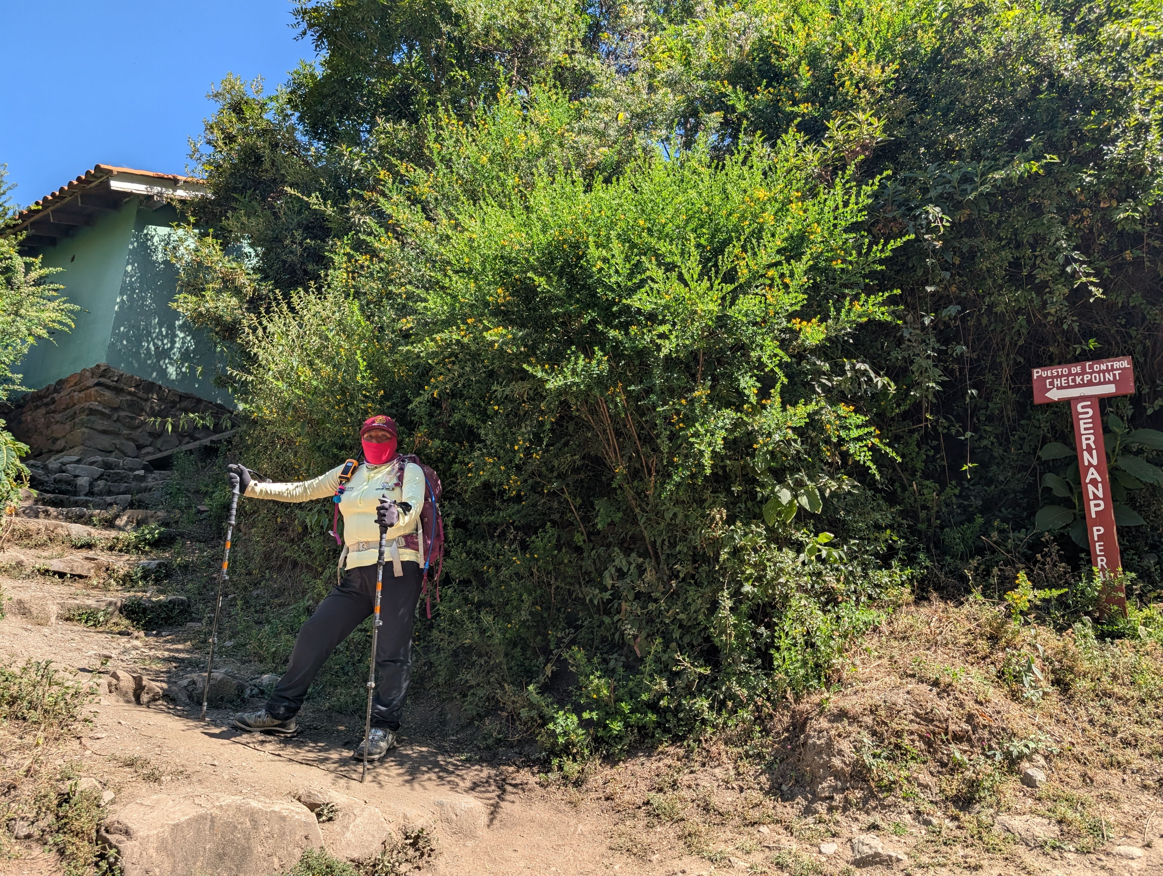 We climb briefly before reaching the Huayllabamba, also spelled Wayllabamba, check point about 1:20 pm. It seems no one is on duty because it’s their lunch time. I get my passport out and ready. While we wait, I check out the information boards about the flora and fauna.