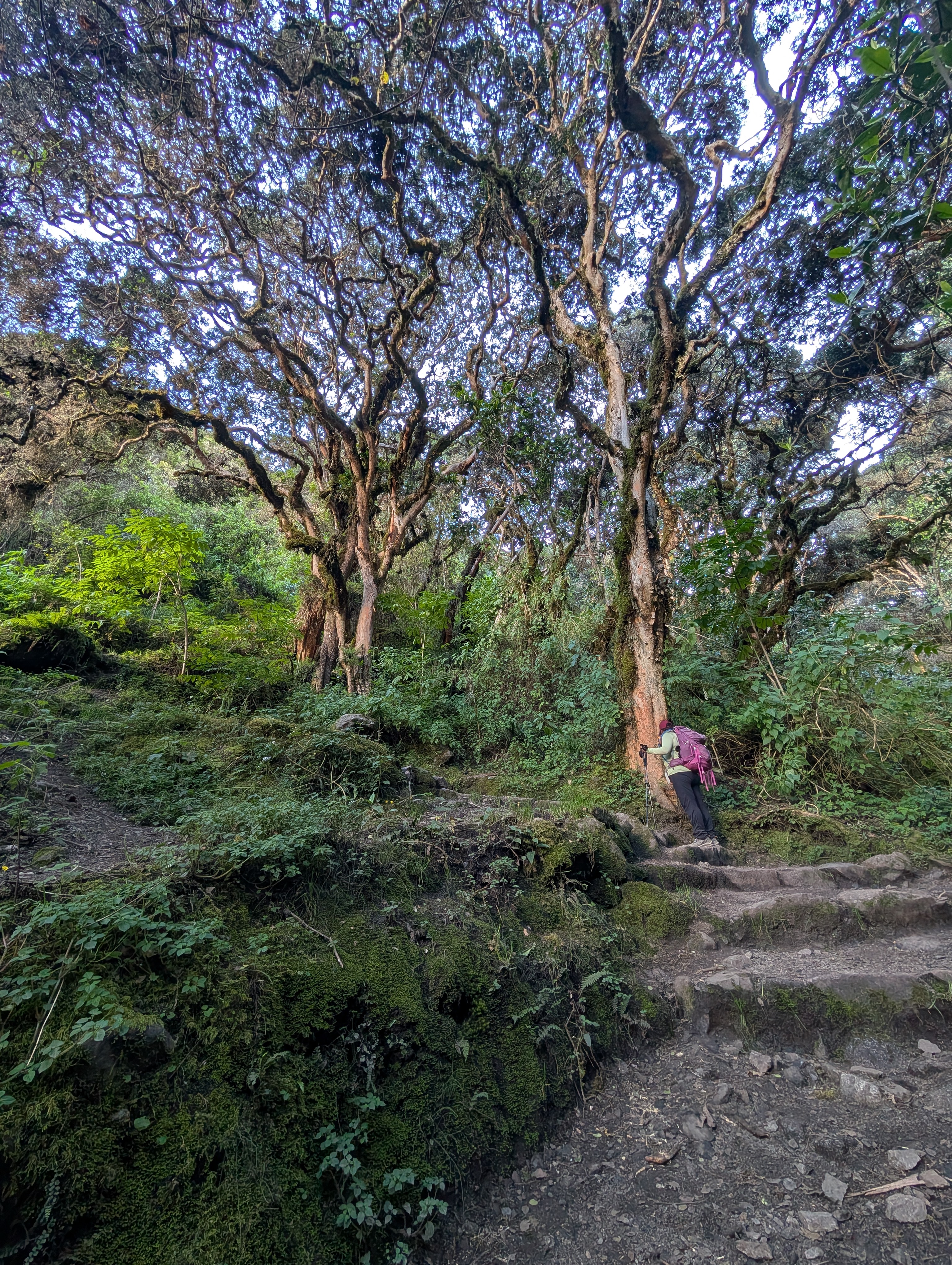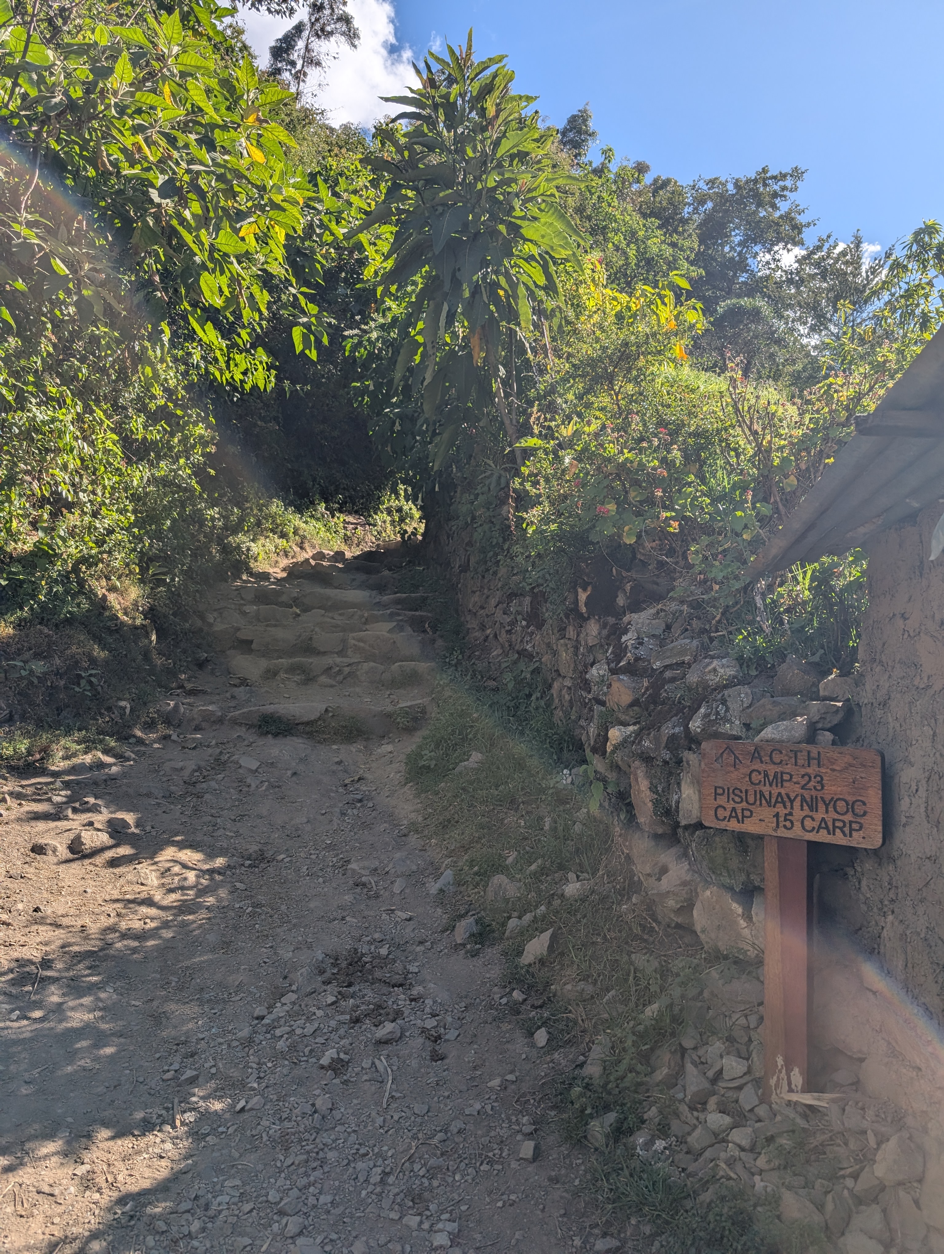 I’m grateful as the trail climbs into shady forest. The dirt Inca Trail occasionally transforms into rock and I’m so impressed. I’ve seen similar rock trails like this and now I understand that they were mimicking Inca engineering.