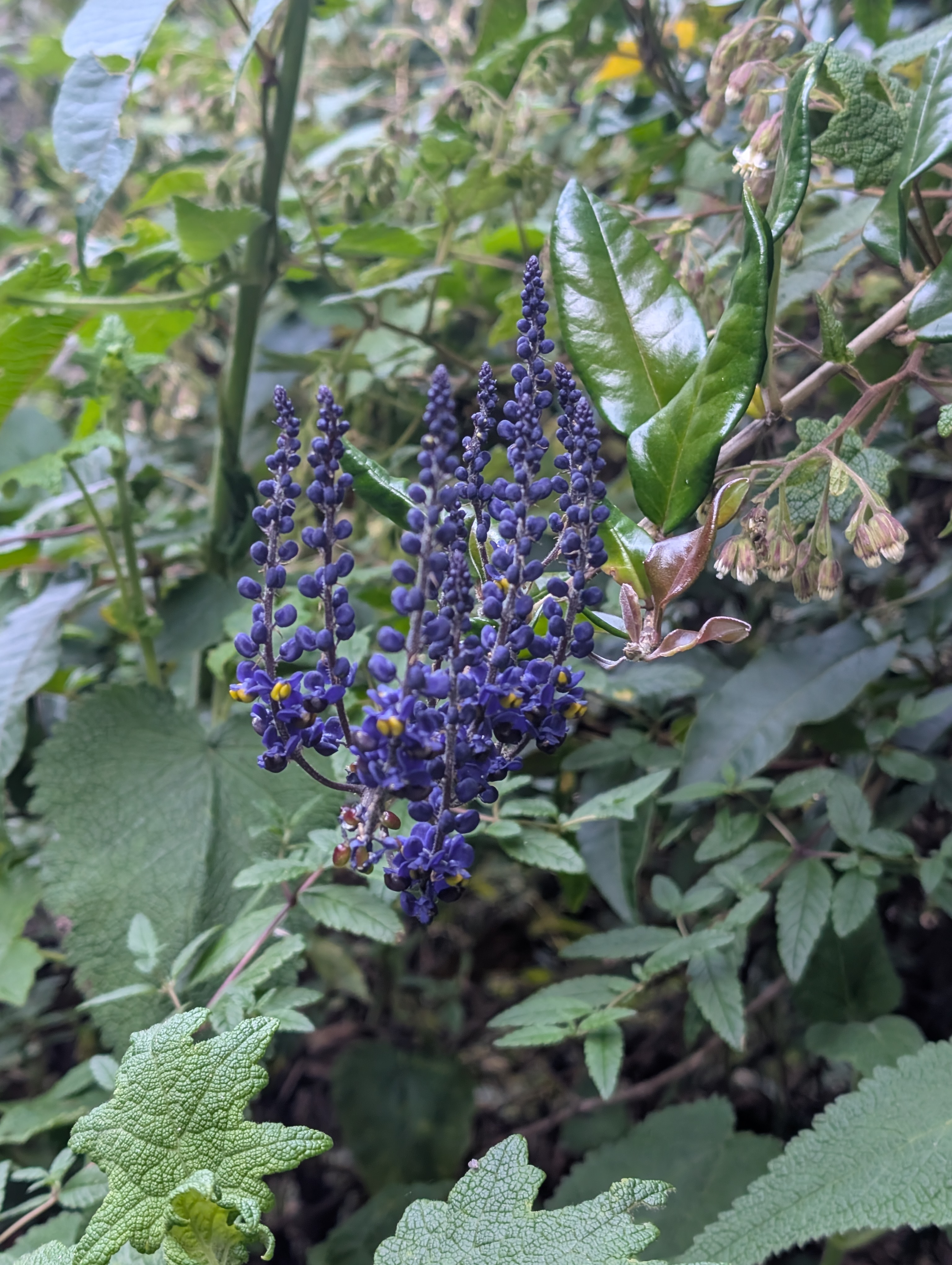 Above: orchid, Phytolacca poleweed just starting to bloom